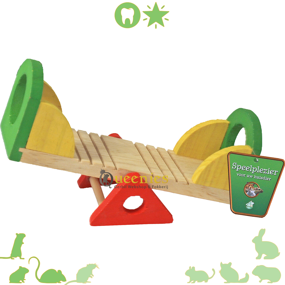 De gekleurde wipwap. Met stabiele onder voet en ruimte zat voor 2 gerbils ;)