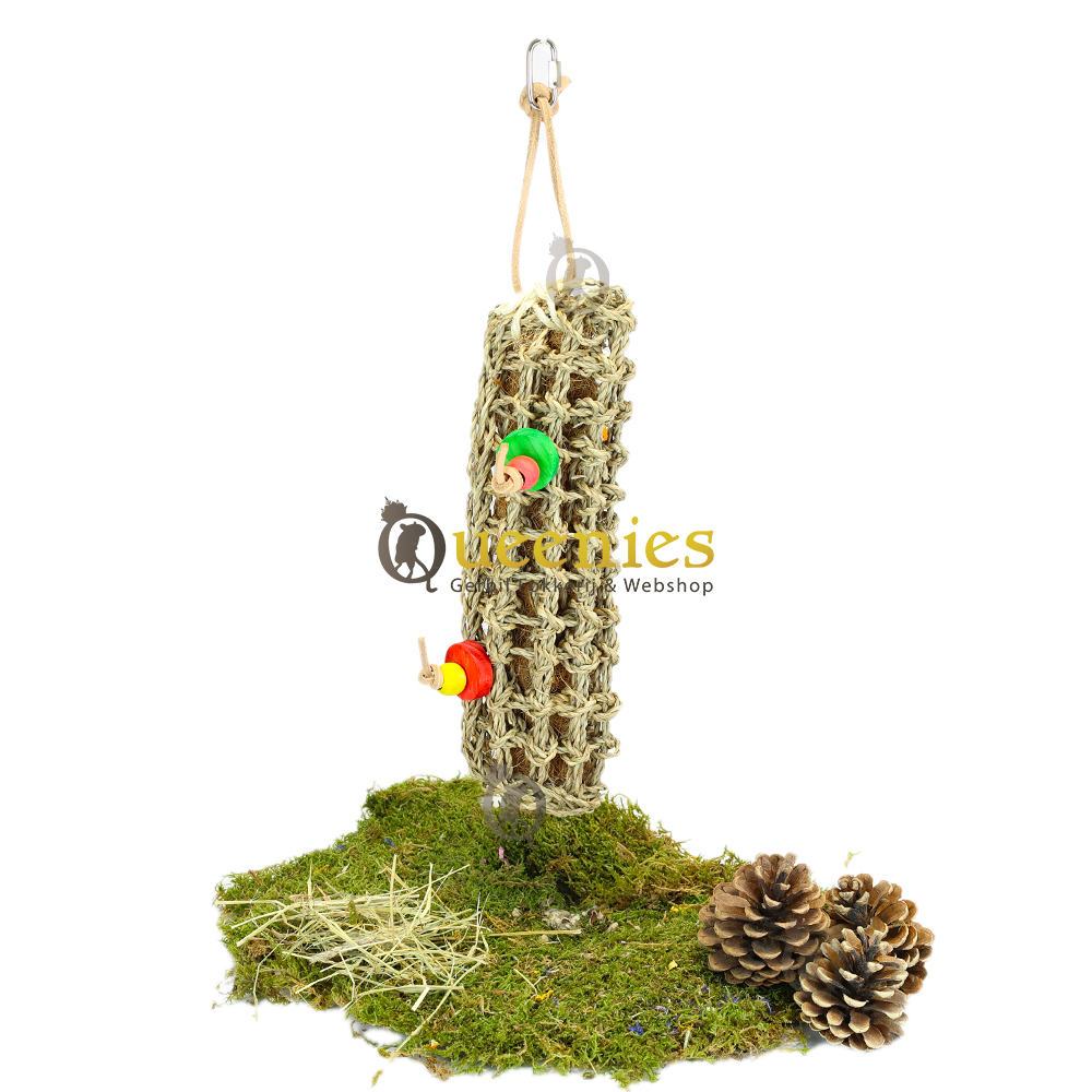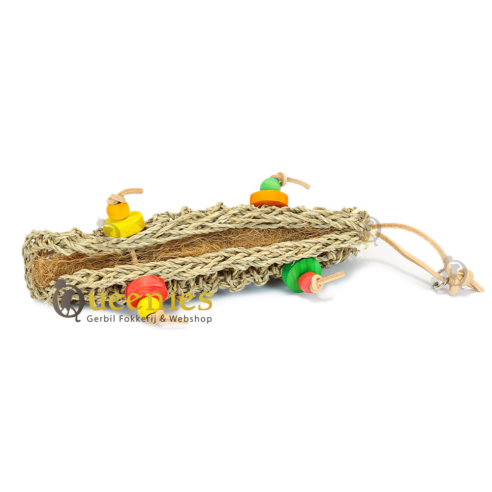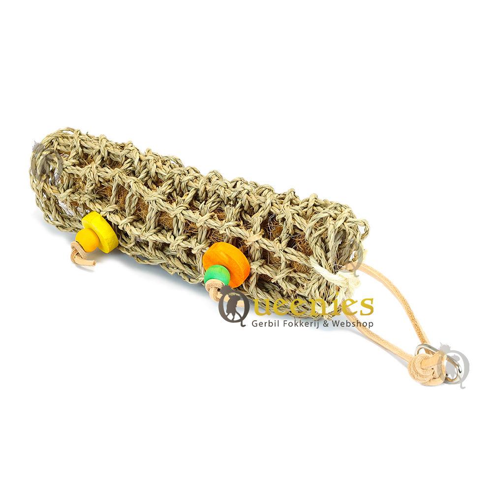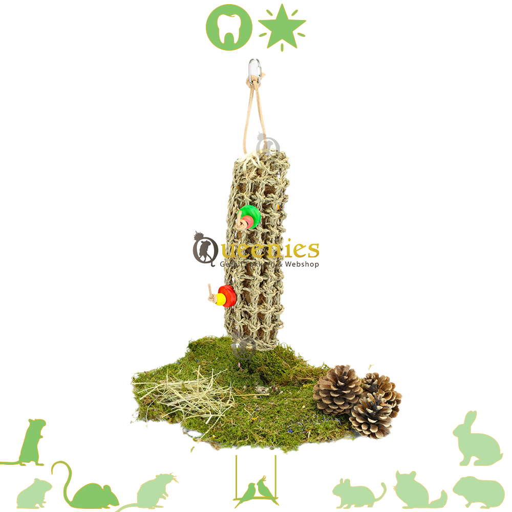 Gemaakt van Zeegras met Kokosvezels 55 cm lang is het nieuwe Klimspeelgoed voor Knaagdieren en Vogels. Door het gebruikt van Zeegras in dit product zal het niet snel kapot geknaagd worden. Zeegras is een sterk materiaal en voegt een extra laag textuur toe aan het klimspeelgoed. Wat alleen maar fijn is voor Knaagdieren en Vogels om aan te knagen of knabbelen. Van Knaagdieren is het bekend dat zij graag aan dingen knagen, het zit natuurlijk ook in de naam. Maar Vogels vinden het ook erg fijn om aan producten te knagen of het kapot te knabbelen. Daarom is dit product geschikt voor Vogels en Knaagdieren. Het Zeegras met Kokosvezels Klimtouw kan ook opgehangen worden in het Terrarium/Vogelkooi. Door zelf een extra stuk touw eraan vast te maken kan de het product op verschillende hoogtes worden opgehangen.