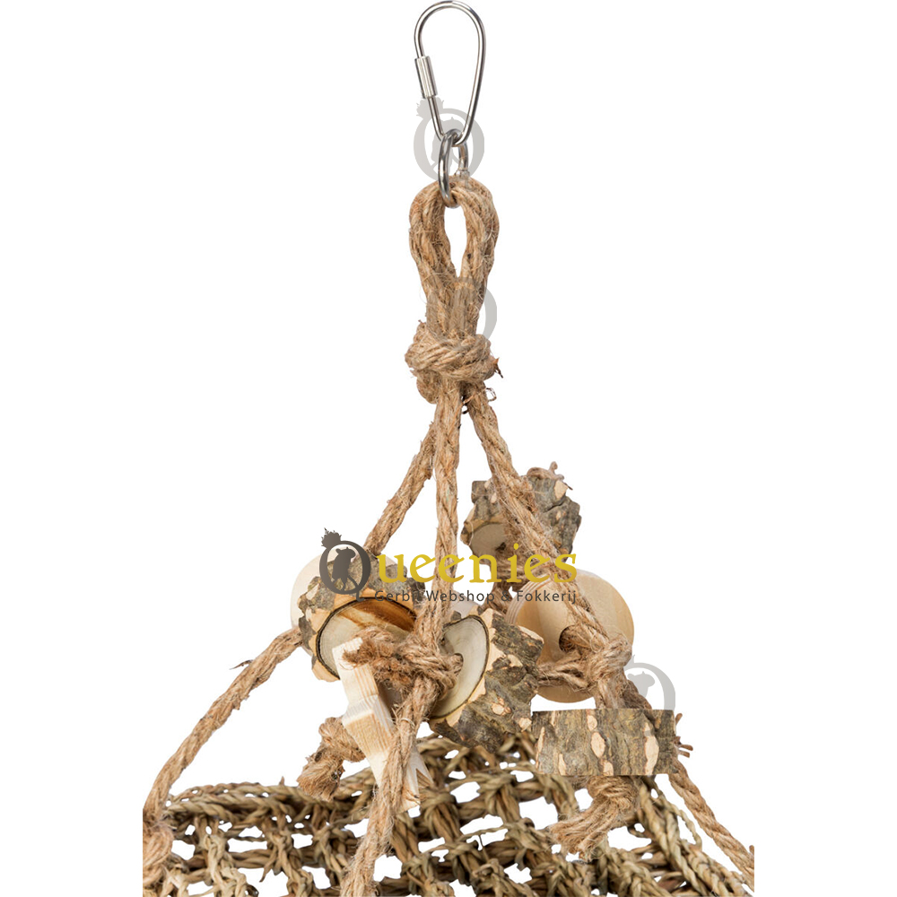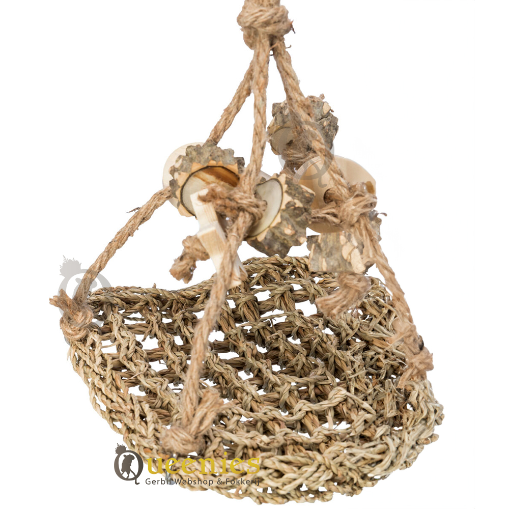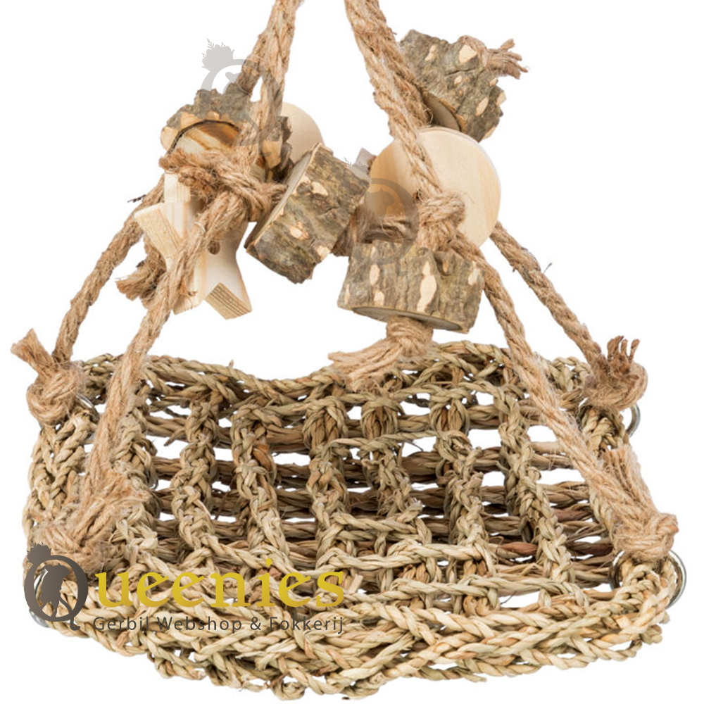 De Zeegras Schommel van 19 cm is het nieuwe Schommel speelgoed voor Knaagdieren en Vogels. Zoals de naam al zegt kunnen Knaagdieren erin schommelen, maar ook Vogels vinden het leuk om dit te doen. Aan de Zeegras Schommel zitten houten blokjes, voor Knaagdieren kunnen zij hier lekker aan knabbelen terwijl Vogels hun snavel aan het vlastouw kunnen slijpen. Niet alleen kunnen dieren met de Zeegras Schommel spelen, het is ook nog eens van natuurlijk materiaal gemaakt waardoor het veilig is voor Knaagdieren en Vogels om mee te spelen en aan te knagen.