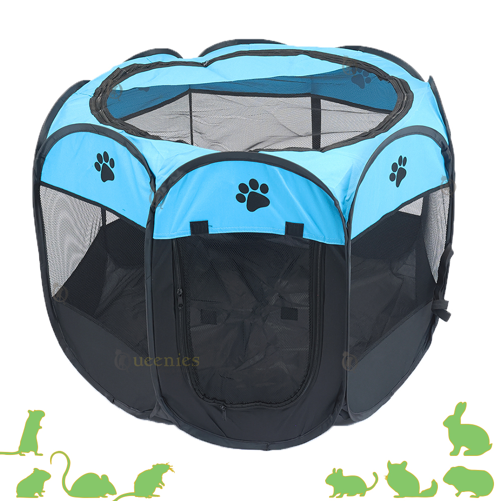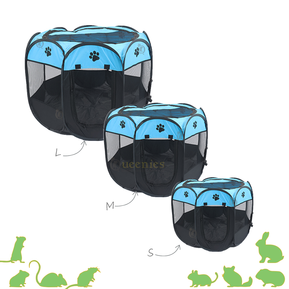 Deze lichtblauwe speelren biedt een veilige en flexibele oplossing voor kleine huisdieren. Denk aan cavia’s, konijnen, hamsters, ratten, pups of kittens. De ren is gemaakt van stevig polyester met ademende gaaswanden, zodat jij je dier goed in de gaten kunt houden en het dier voldoende frisse lucht krijgt. De bovenzijde is gedeeltelijk afsluitbaar met een ritssluiting, handig bij dieren die graag klimmen of springen.