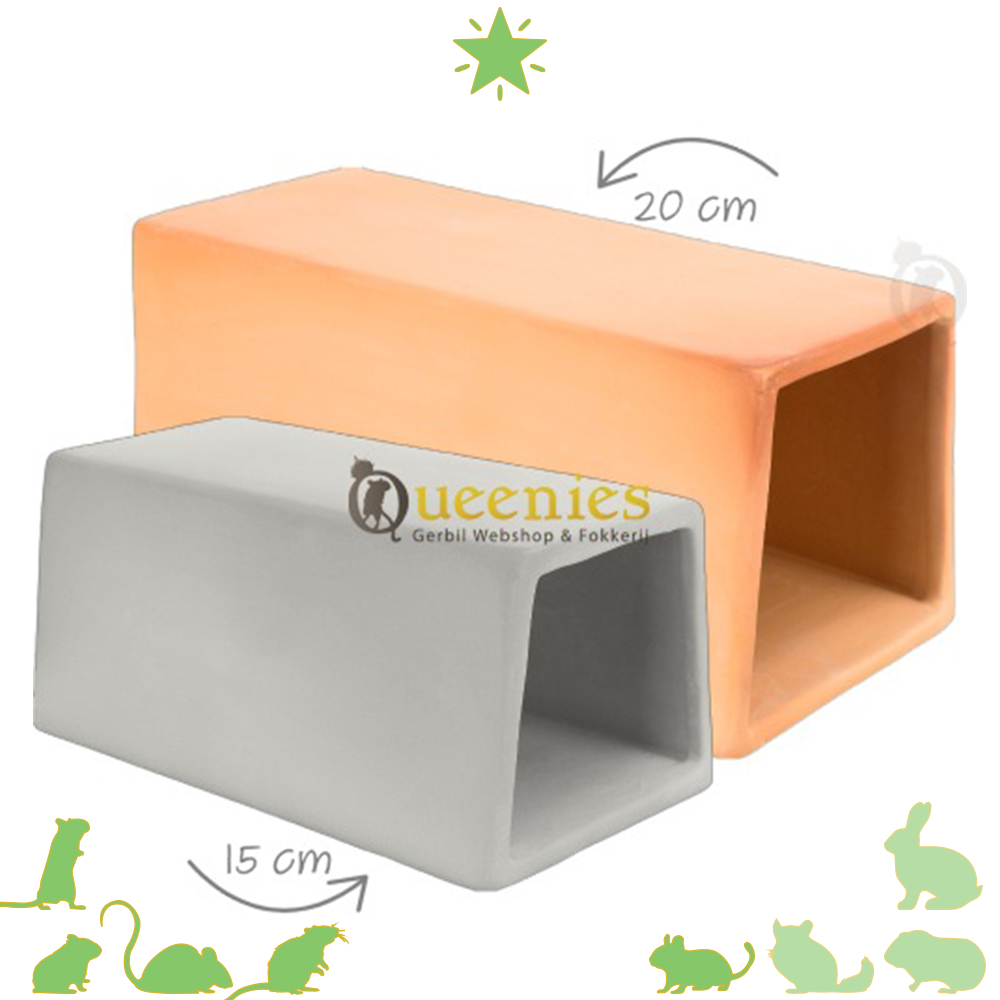 Deze Keramiek Tunnel 20 cm is een speeltje die het altijd goed doet in het Gerbil Terrarium! Een product wat het natuurlijke instinct van de Gerbil naar boven haalt. Daarnaast heeft deze tunnel een verkoelende werking in warme zomerse dagen. De Keramiek Tunnel heeft een Terracotta kleur. Het huisje kan daarom geschilderd worden. Een leuke dagbesteding met de kind(eren) Met de Terracotta Tunnel gaat plezier en functionaliteit dus hand in hand! Deze grote prachtige Tunnel biedt niet alleen een schuilplaats, maar heeft nog veel meer te bieden. Een absolute must-have voor iedere klein Knaagdieren.