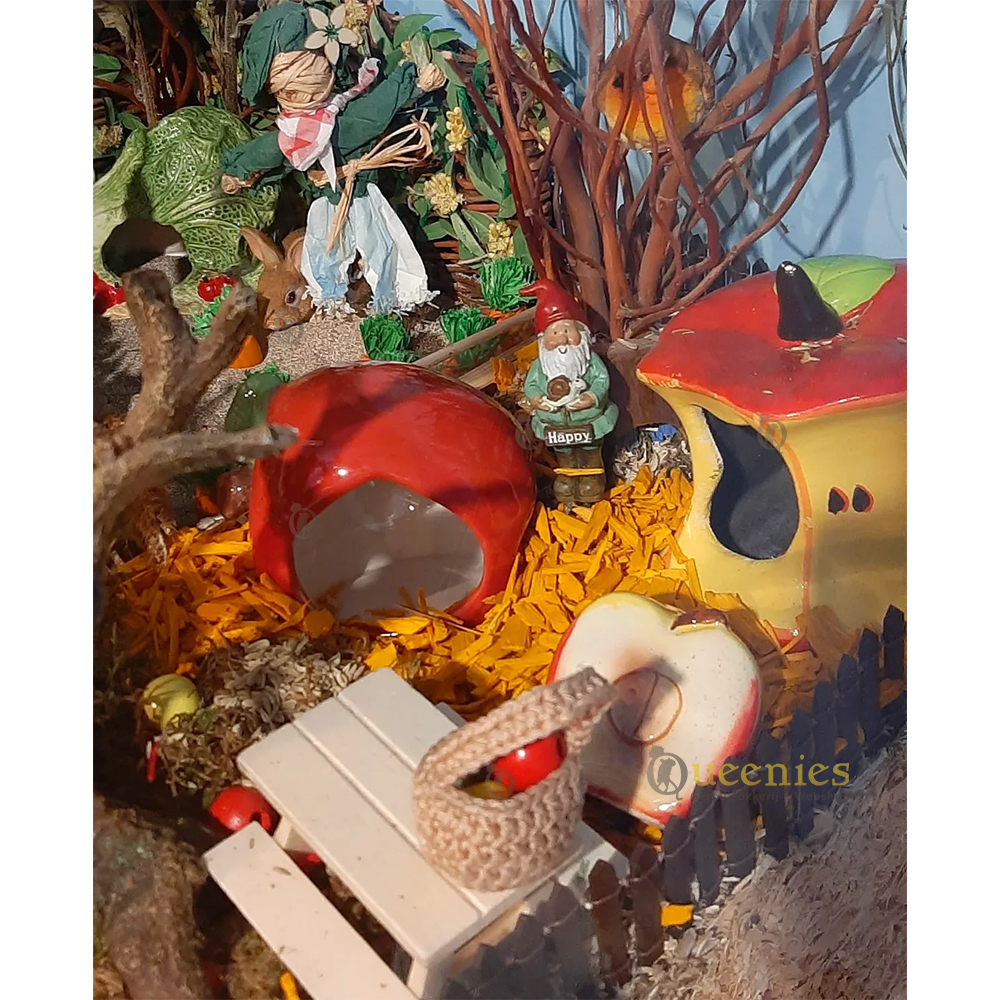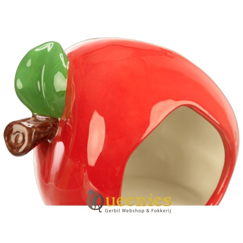 Dit Appel Keramiekhuisje is erg geschikt bij Hamsterscaping. In de natuur of een appelwijngaard zien we ook vaak appels op de grond liggen. Sommige onaangeroerd, andere half opgegeten door buitendieren en of mensen. Zo'n verdwaalde Appel in een Hamsterscape verstoppen geeft dus een erg natuurlijk effect. Het is niet zo dat alles alleen maar van hout en groen mos hoeft te bestaan in een Hamsterscape, bepaalde artikelen kunnen ook fel van kleur zijn zoals dit leuke schattige Appelhuisje van Keramiek.