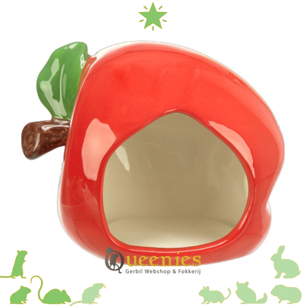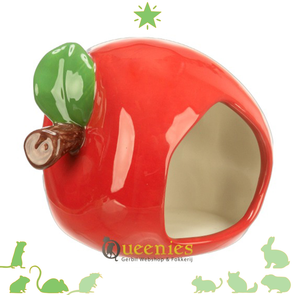 Dit leuk ontworpen Keramiekhuis in de vorm van een Appel is geschikt voor kleine Knaagdieren zoals een Hamster of Muis. Het kan gebruikt worden als leuk Design Knaagdierhuis of als verkoelend Hamsterhuis. Keramiek heeft nameljik een fijne eigenschap dat het erg verkoelend werkt. Wanneer het buiten erg warm is zal het in huis ook vaak sneller warm worden, uw huisdier stelt dit vaak niet op prijs en is dan erg opzoek naar verkoeling. Dit Keramieke Appelhuis geeft die verkoeling waarnaar uw huisdier opzoek is.