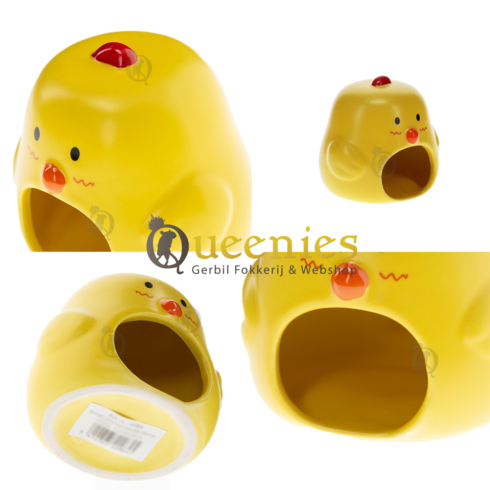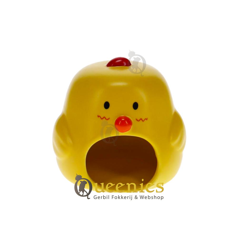 Stenen Knaagdierenhuis Kuiken: Door de Kuiken vorm heeft dit Stenen Knaagdierenhuis een zacht en comfortabel uitstraling. In de buik van de Kuiken is de enige doorgang van het Huisje. Door de enige opening is het een veilige slaapplek voor Knaagdieren.