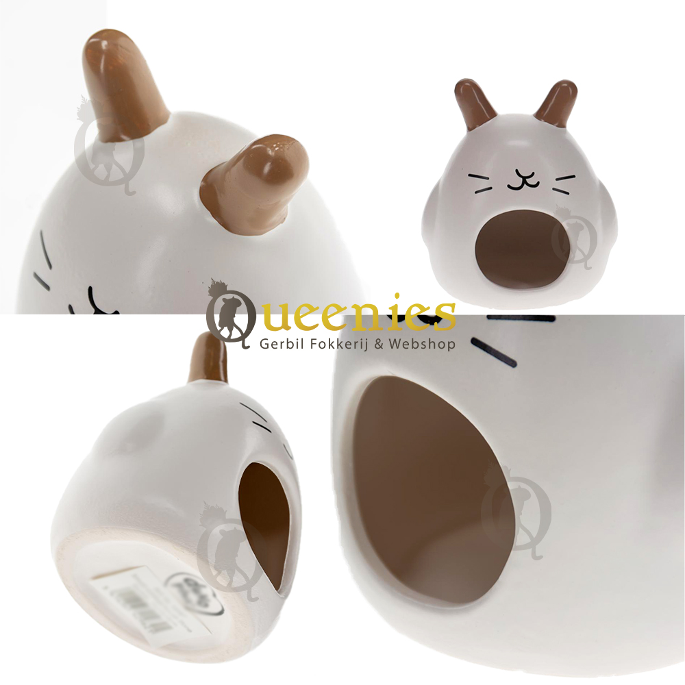 Stenen Knaagdierenhuis Konijn: Niet alleen zit dit Huisje er leuk uit door de uitstekende Konijnen oren, maar het huisje heeft ook een schattig uiterlijk. Ook dit huisje is een ideale slaap/schuilplek voor kleine Knaagdieren.