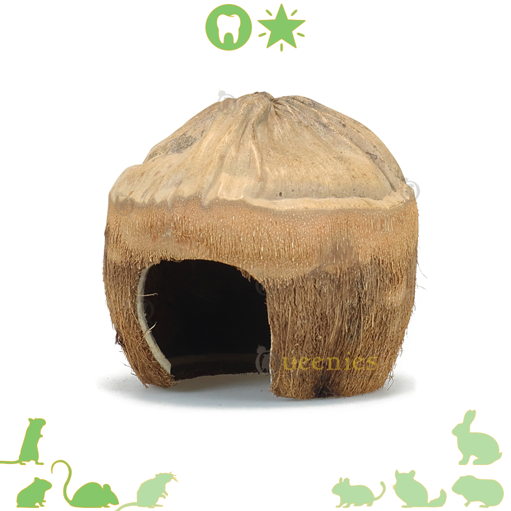 Geef je Knaagdieren een comfortabele plek om zich terug te trekken met de Kokosnoot hut. Een natuurlijk Knaagdieren huisje gemaakt van echte Kokosnoot. De Kokosnoot hut is ideaal voor dieren zoals Hamsters, Muizen en Gerbils die graag verkennen, knagen en zich verstoppen. Door het gebruik van natuurlijke materialen sluit de Kokosnoot hut perfect aan bij een natuurlijk ingerichte Hamsterscape, waardoor het er aantrekkelijk en rustgevend uitziet. Vul de hut met wat nestmateriaal zodat je Knaagdier er een warm en comfortabel nestje van kan maken.