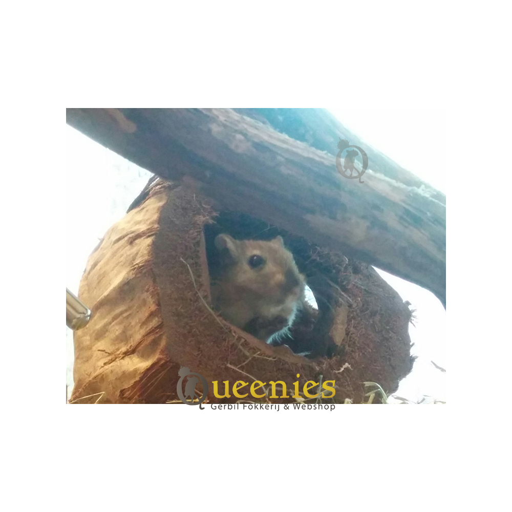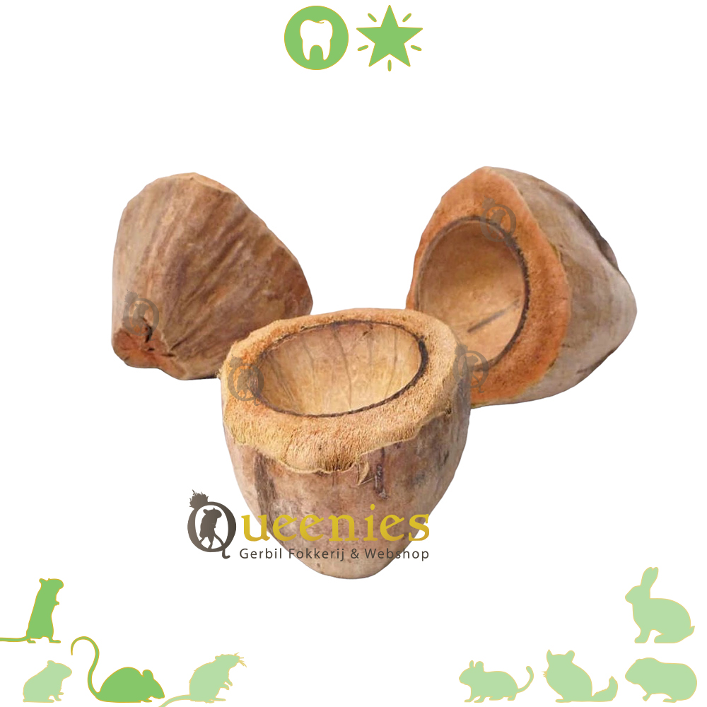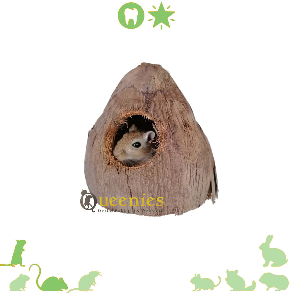 De kokosnoot is niet zomaar een leuk speel of slaaphuisje voor kleine knaagdieren maar helpt ook bij de gezondheid van uw Gerbils als het gaat om nagelverzorging. Gerbils zullen hard graven in de kokosnoot, dit doen ze niet uit verveling of stereotype gedrag, dit is puur voor de verzorging en slijtage van hun nageltjes.