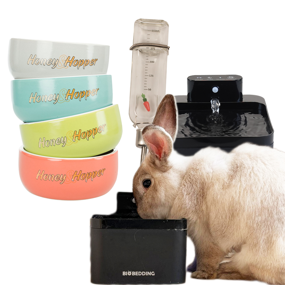 Konijnen moeten altijd toegang hebben tot vers water en hun dagelijkse voeding. Goede voerbakken en drinksystemen zorgen ervoor dat water en voer schoon blijven en gemakkelijk bereikbaar zijn.