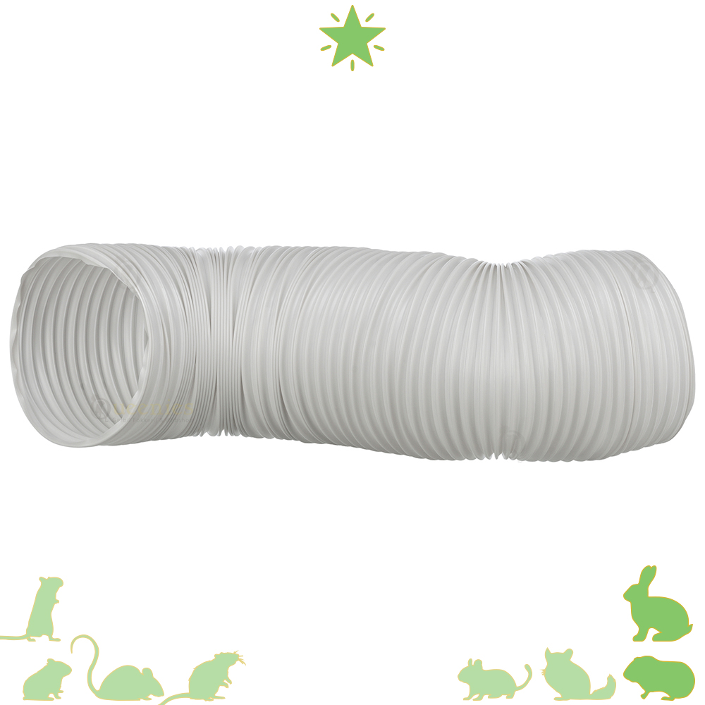 Dankzij de buigzame structuur kun je de tunnel eenvoudig aanpassen aan het verblijf. Hierdoor blijft de omgeving afwisselend en uitdagend, wat bijdraagt aan zowel lichamelijke als mentale stimulatie.