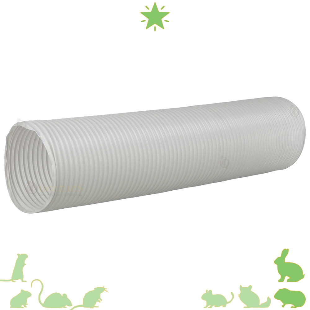 Door de diameter van circa 20 cm kunnen konijnen comfortabel door de tunnel bewegen. De verstelbare lengte van ongeveer 19 tot 80 cm maakt het mogelijk om verschillende opstellingen te creëren. Hierdoor kun je de leefomgeving regelmatig aanpassen en vernieuwen.
