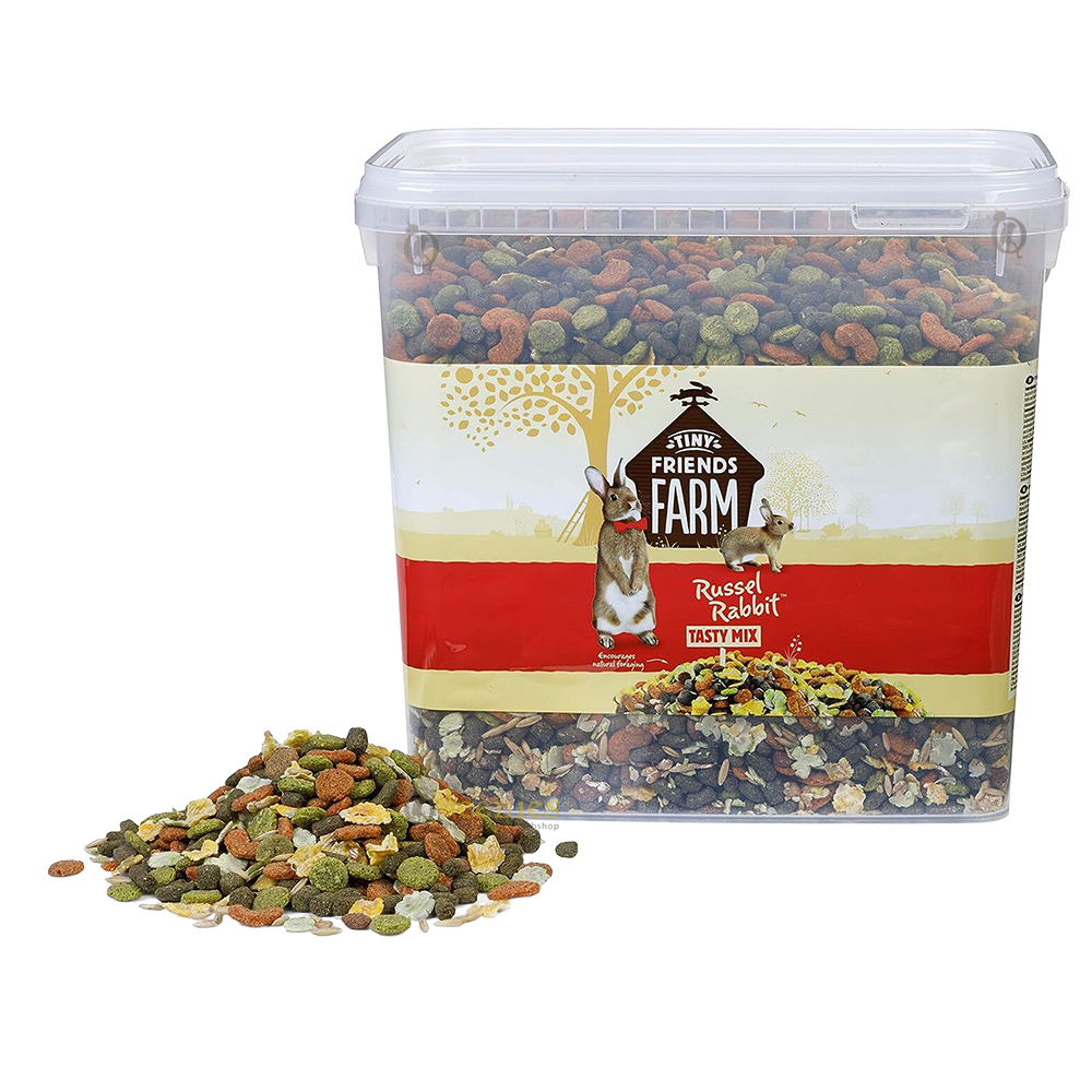 Tiny Friends Farm Russel Tasty Mix is een complete en gevarieerde konijnenvoeding voor volwassen konijnen van alle rassen. Deze smakelijke mix is ontwikkeld als dagelijkse aanvulling op onbeperkt hooi en sluit aan bij het natuurlijke eetgedrag van je konijn.