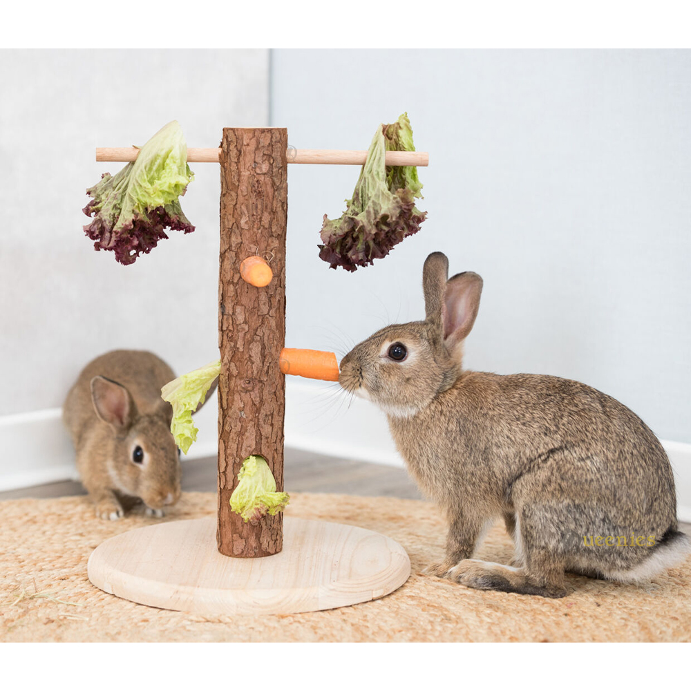 Konijnen Snack Boom – Houten snackhouder voor groenten en takjes
