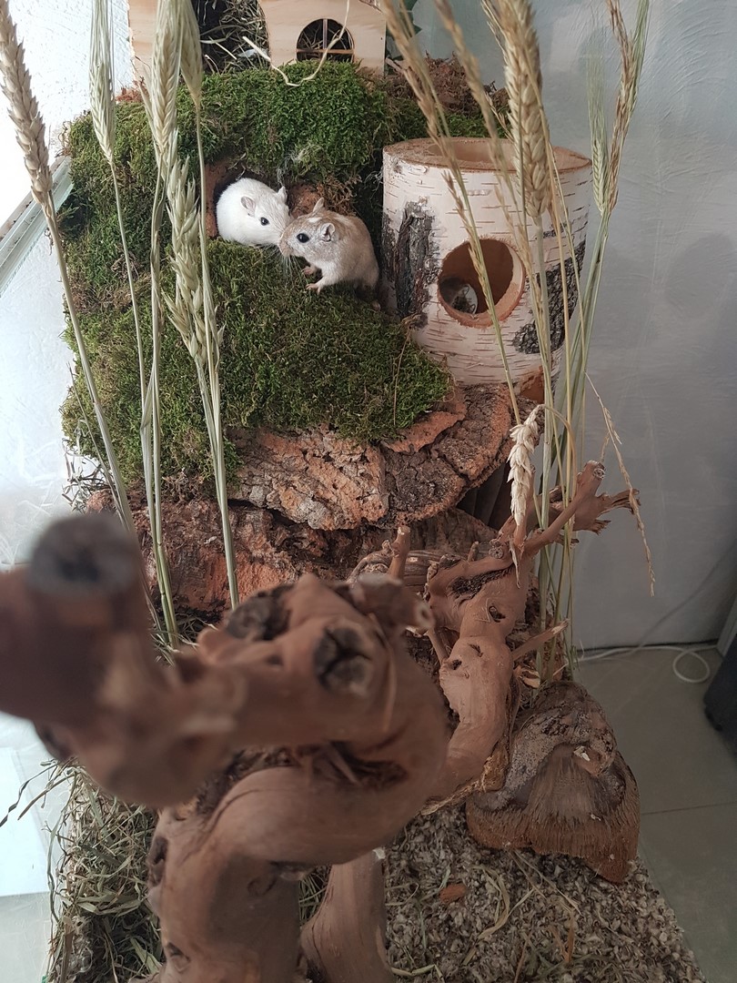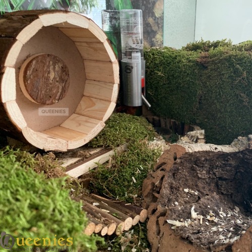 Omdat het mos uit plakken bestaat is dit vrij eenvoudig neer te leggen. Ook kan het gedroogd terrarium mos 200 gram over een deel van de bodembedekking gelegd worden. De kleine knaagdieren kunnen er dan onderdoor en overheen kruipen.