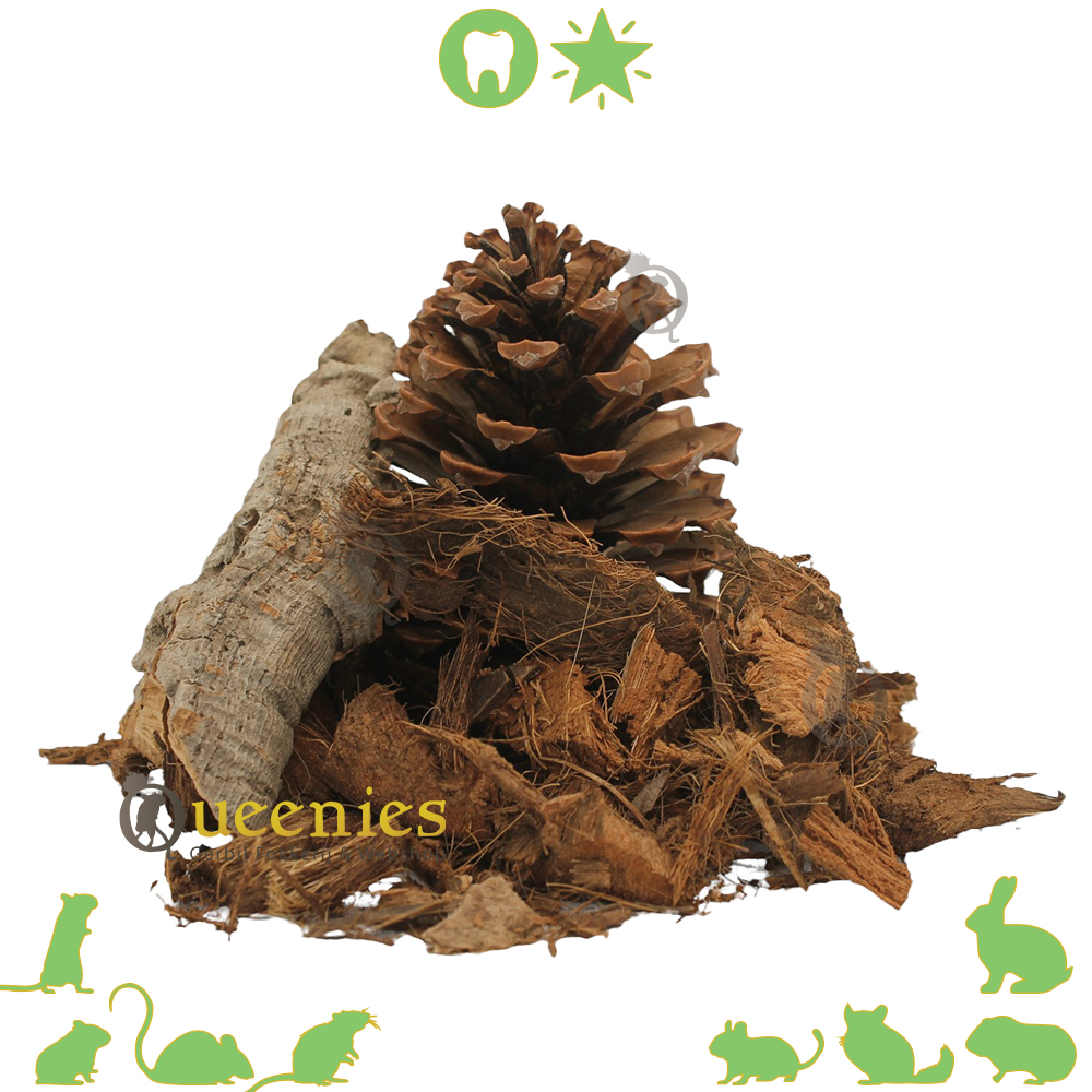Een mooi zakje herfstfestijn mix. Leuk te gebruiken bij het creeren van een natuurlijke leefomgeving van uw knager ( scaping ) Het zakje bevat wat kurk, kokos en denneappel(s) Wanneer er grote denneappels zijn heeft de mix 1 denneappel, wanneer de denneappels klein uitvallen zullen er meer in de mix gedaan worden. Denneappel is een geweldig speeltje voor kleine dieren. Ze kauwen erop en slijpen tegelijkertijd hun tanden. Daarnaast krijgen ze gezonde voedingsstoffen binnen die in de denneappel aanwezig zijn. Denneappels zijn rijk aan antioxidanten, vitaminen en mineralen. Een heerlijk knaagfestijn dus voor gerbils die bijdraagt aan de gezondheid van de uw knaagdier. Met de kokos wordt heerlijk nestmateriaal gemaakt.