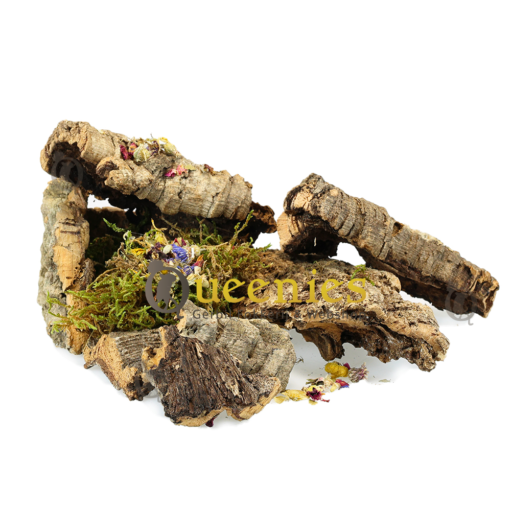 Om een natuurlijk verblijf te creëren kunt u de kurk-mix zakje verspreid op de bodembedekking heen strooien of afscheidingen mee maken. Kurk en Gedroogd Terrarium Mos gaan hand in hand samen en geeft direct een hele natuurlijke look in uw Hamsterscaping. Deze kleine kurkplaten geven een decoratieve uitstraling aan ieder Terrarium / Gerbilarium. Bij Gerbils heeft dit Kurk ook een fijne toegevoegde waarde aan de tand en nagelslijtage. Het Kurk is opzich redelijk eenvoudig kapot te knagen voor Gerbils, maar zullen ze kurk meer gebruiken voor de nagelslijtage omdat de structuur hen niet bevalt in de mond. Hierdoor knagen ze er niet veel aan, maar 'graven' ze meer hun nageltjes aan schoon.