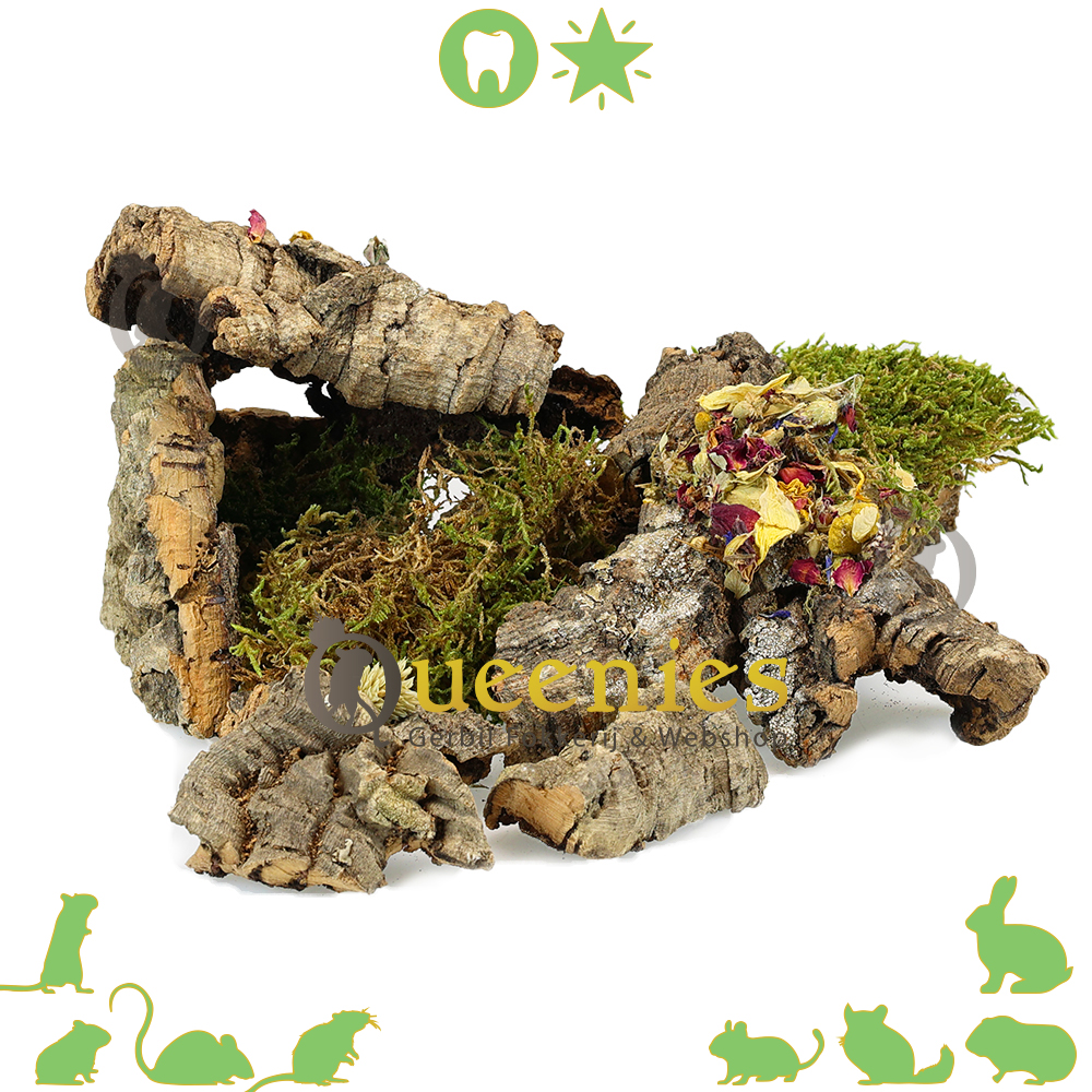 Materiaal: 100% natuurlijke Kurk Inhoud: 300 gram ( ongeveer 10 stukjes kurk, afhankelijk van de grootte ) Geschikt voor: Alle Knaagdieren en konijnen