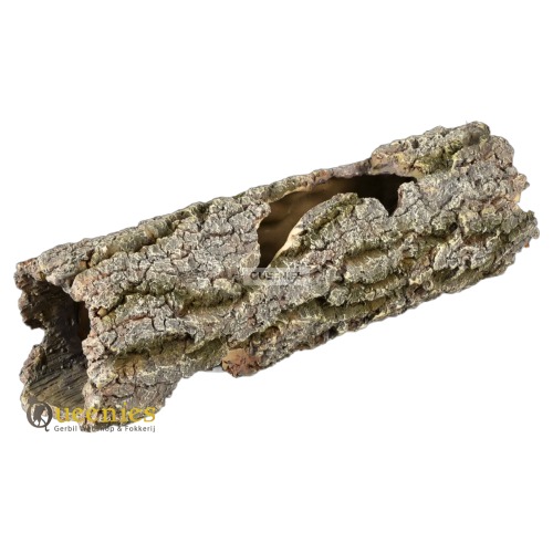 De Kurkstam is gemaakt van Kunsthars, dik kunsthars met onzettend veel gedetailleerde diepgang. We hebben deze in de categorie Kurk & Mos geplaatst omdat onze ervaring is dat de categroie Ornamenten ( kunsthars ) niet veel bekeken wordt. Mensen gaan er misschien wel automatisch ervan uit dat dit geen interessante categorie is, terwijl kunsthars artikelen juist erg natuur getrouw overkomen in een natuurlijk in gericht Hamster Terrarium voor Hamsterscaping.