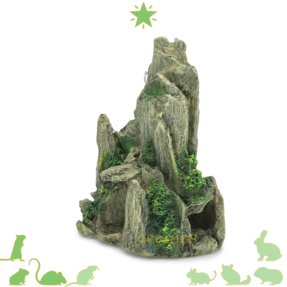 Plaats de Aqua Rots samen met andere decoratieve elementen zoals kleine stenen, schors of houten stukken. Dit creëert een 'bergachtig' gebied in het verblijf, wat perfect is om natuurlijke variatie toe te voegen. Hamsters en Gerbils zullen genieten van het verkennen van verschillende hoogtes en structuren. Je kunt hierbij ook kleine tunnels aan de voet van de rots leggen, zodat je Knaagdier kan kiezen tussen verkennen boven de grond of zich verstoppen eronder.