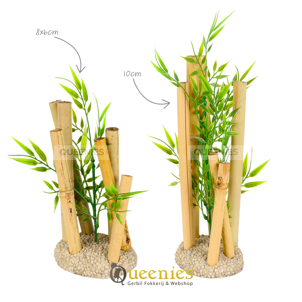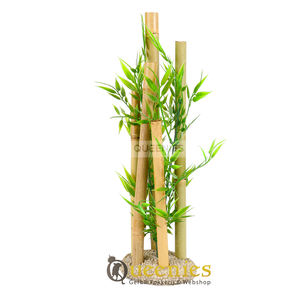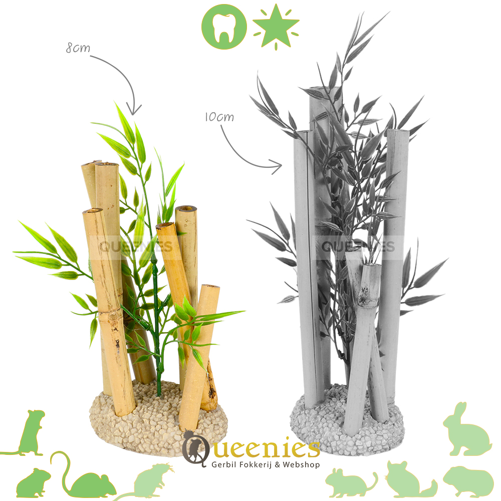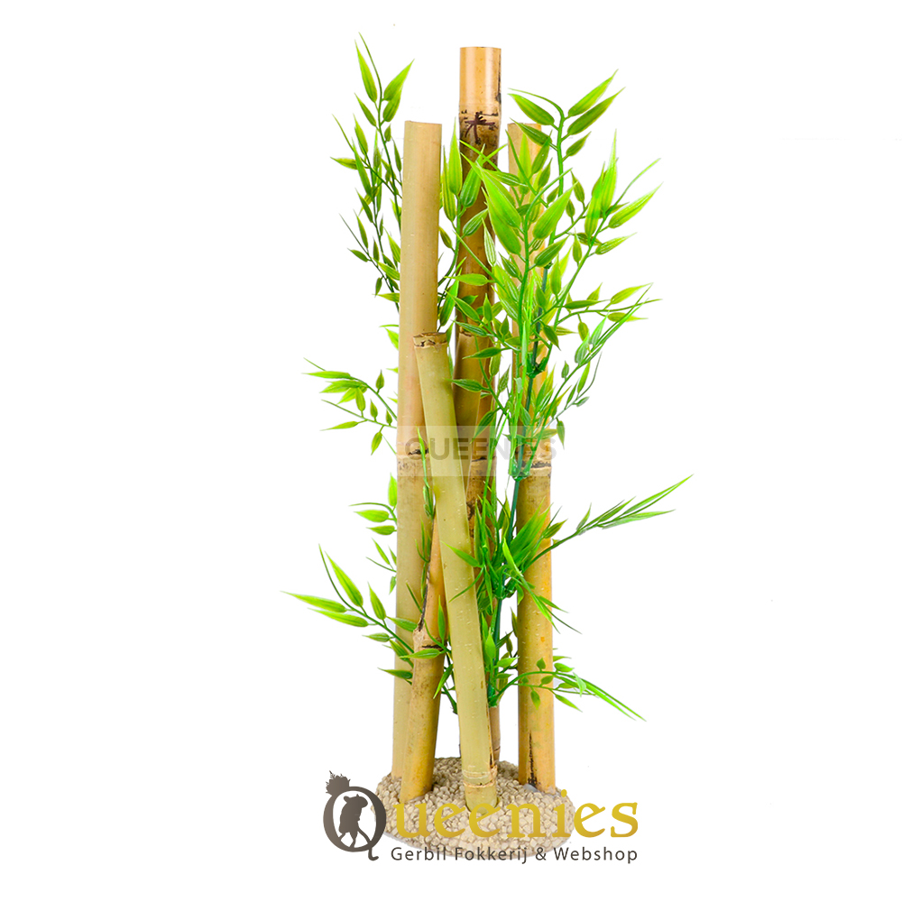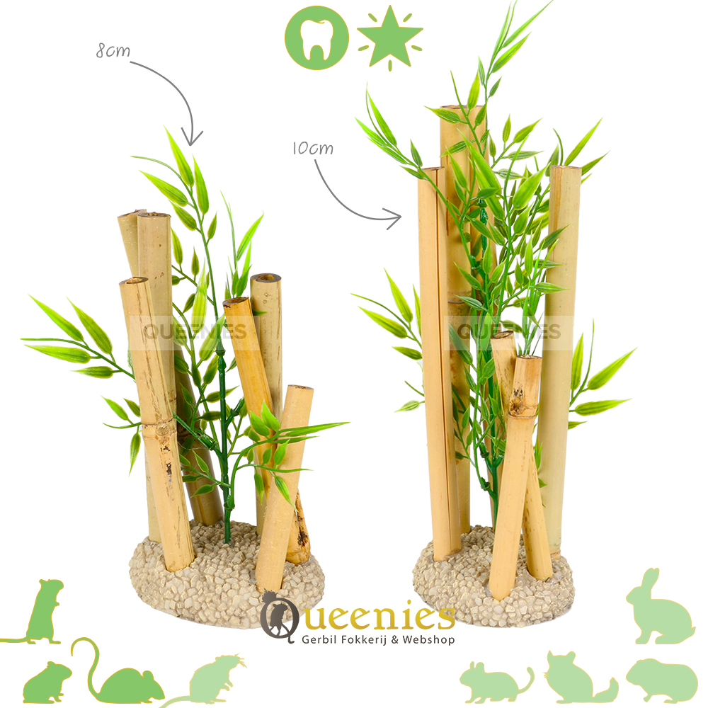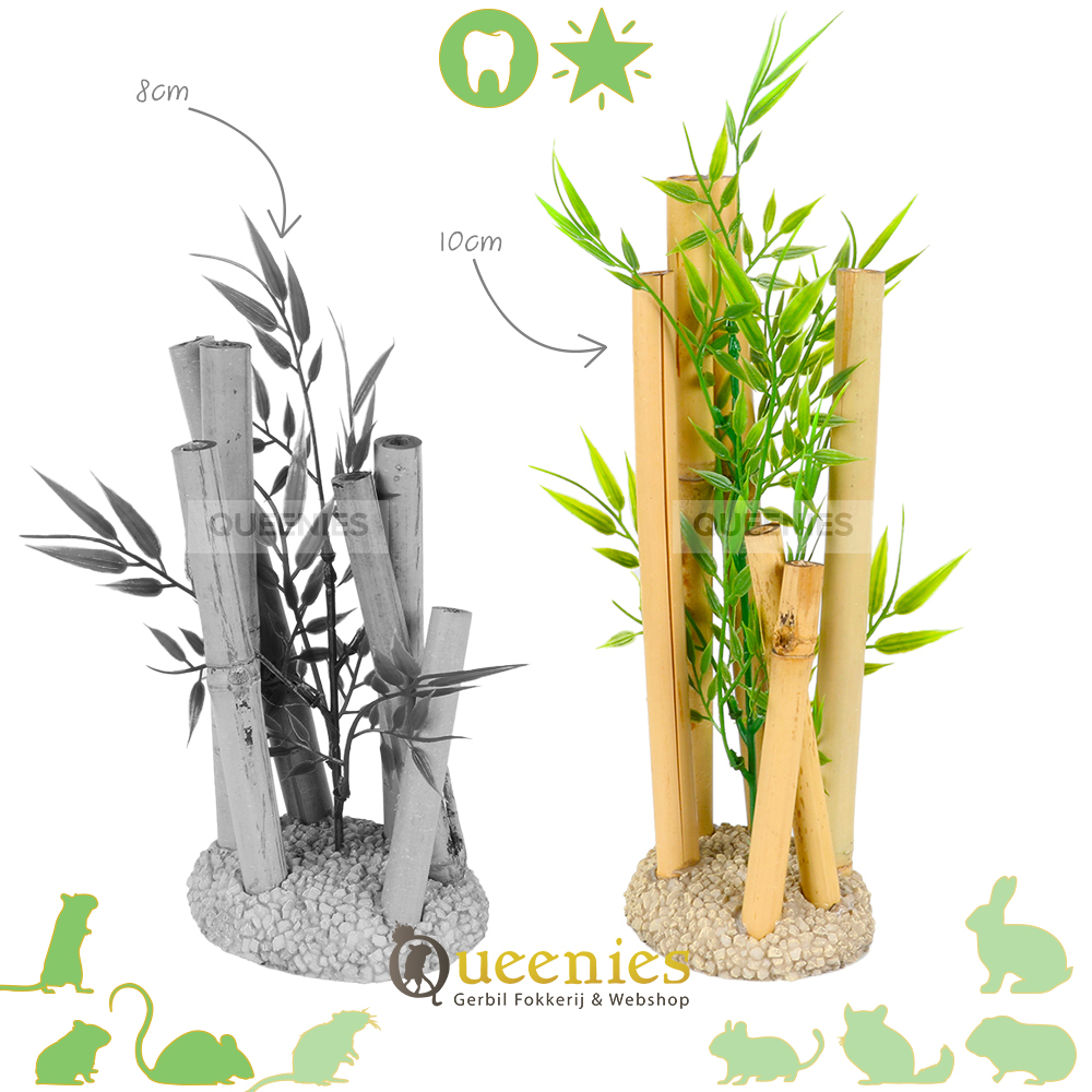 Deze Bamboe is een Veilige keuze voor Hamsters en Muizen. Onze Bamboe Decoratie is speciaal behandeld, de stelen zijn van echt Bamboe, het blad is namaak plant. Dit dient dus echt puur en alleen ter decoratie. Je kunt met een gerust hart je Hamster of Muizen laten genieten van deze natuurlijke verrijking in het Hamster Terrarium
