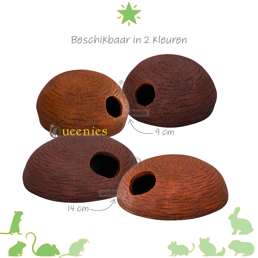 Zeer fijne Grot van Kunshars voor kleine Knaagdieren met een ruime opening aan de voorkant en een gesloten onderkant. Doordat het een gesloten onderkant heeft kan het dus ook echt dienen als een schuilplaats in de vorm van een grot. Een grot met een natuurgetrouwe uitstraling die bescherming biedt aan uw huisdier. De grotten zijn niet heel groot en is daarom niet geschikt voor Goudhamster. De kleinste grot heeft een mooie maat voor een Dwerghamster, de grotere maat is ook mooi geschikt voor Gerbils. Omdat een Gerbil altijd met z'n 2e slapen bevelen wij de grotere grot aan voor Gerbils. Het wilt niet zeggen dat grot 1 niet geschikt is voor Gerbils, alleen zullen ze daar niet met z'n 2e in gaan slapen.