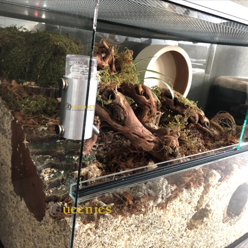 De bovenkant van de Hoek rots heeft een plat dak of platform, bij de grootste maat is dit platform groot genoeg om er een water of voerschaal op te zetten. Hoewel wel dit niet direct adviseren. Het zou wel een mooie klimplaats zijn naar een drinkvoorziening als u de Magnetische drinkfleshouder van Queenies heeft. Die kunt u dan hoog ophangen en dit Hoek Rots gebruiken als trap daar naar toe.