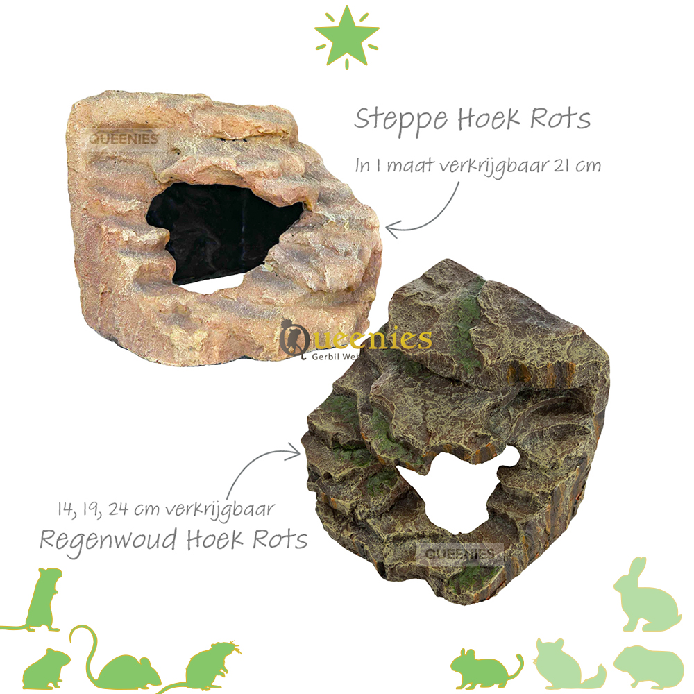 Welke afmetingen Hoek Rots met Schuilplaats zijn er verkrijgbaar?