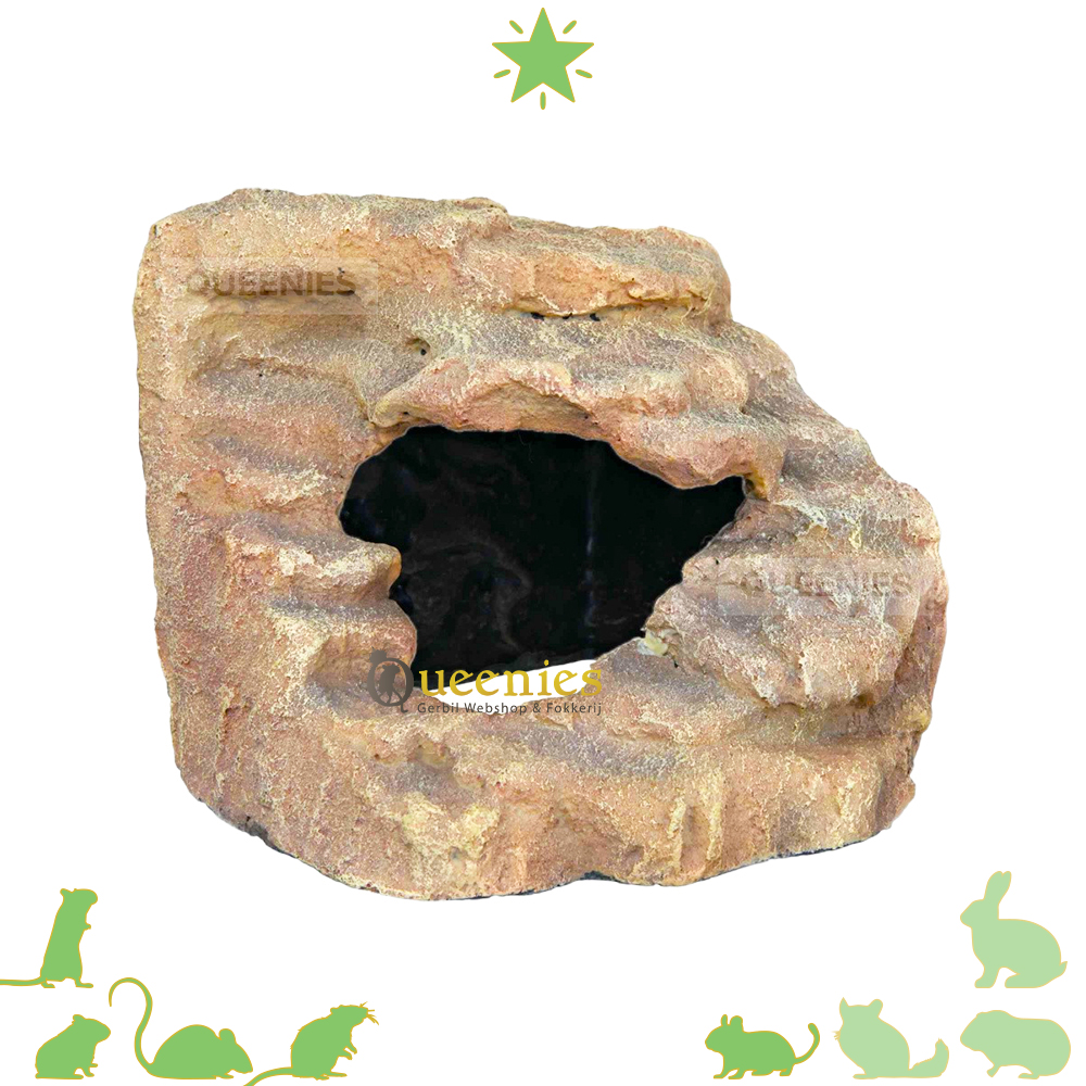 Deze Hoek Rots past perfect in de hoek van uw Terrarium / Gerbilarium en hebben een mooie opening in het midden van de rots. Op de binnenplaats kunt uw huisdier zich veilig terugtrekken en een lekker nestje of holletje maken voor zichzelf.
