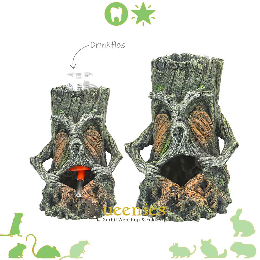 Ontdek de multifunctionele charme van onze unieke boomstam met gezicht 1. Niet alleen een stijlvol decoratief stuk in een natuurlijk ingericht Hamster terrarium, maar ook een ingenieuze drinkfleshouder! De Classic 150 ml Drinkfles pas prachtig in dit gezicht waardoor de drinkfles knaagproef wordt gemaakt. Deze Boomstam is hier helemaal niet voor ontworpen, maar zo zie je maar weer, soms moet je net even met een andere blik naar een product kijken om te zien dat het op veel meer mogelijkheden inzetbaar is! Door de Classic 150 ml Drinkfles in de Boomstam te doen heeft deze boomstam zich ontpopt als de perfecte beschermer voor de drinkfles van uw kleinere knaagdieren.