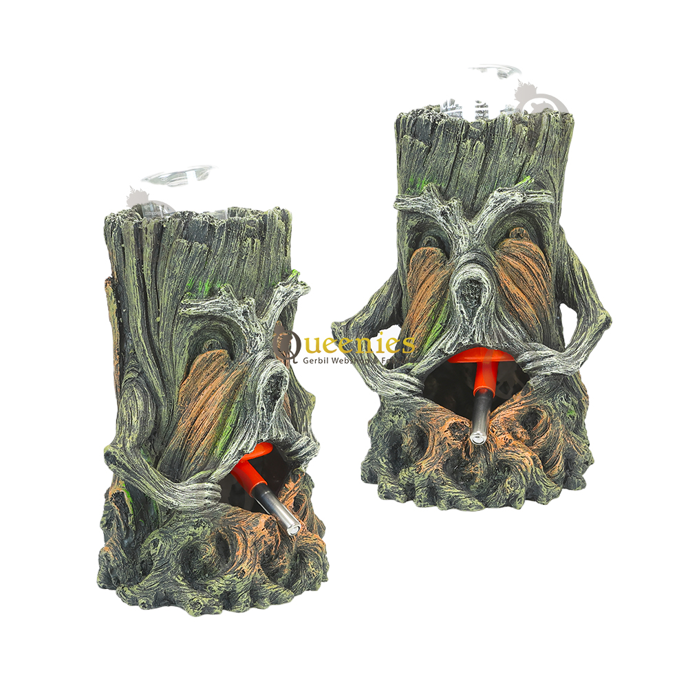 Deze boomstam zorgt ervoor dat de drinkfles buiten bereik blijft van de grote knagers, terwijl het tegelijkertijd een aantrekkelijke toevoeging aan de leefruimte is met een natuurlijke touch. De hoogte van de opening is zorgvuldig uitgekozen zodat de tuit van de drinkfles op de juiste plek blijft zonder dat het de grond aanraak en uw kleine huisdier zonder moeite kan drinken.