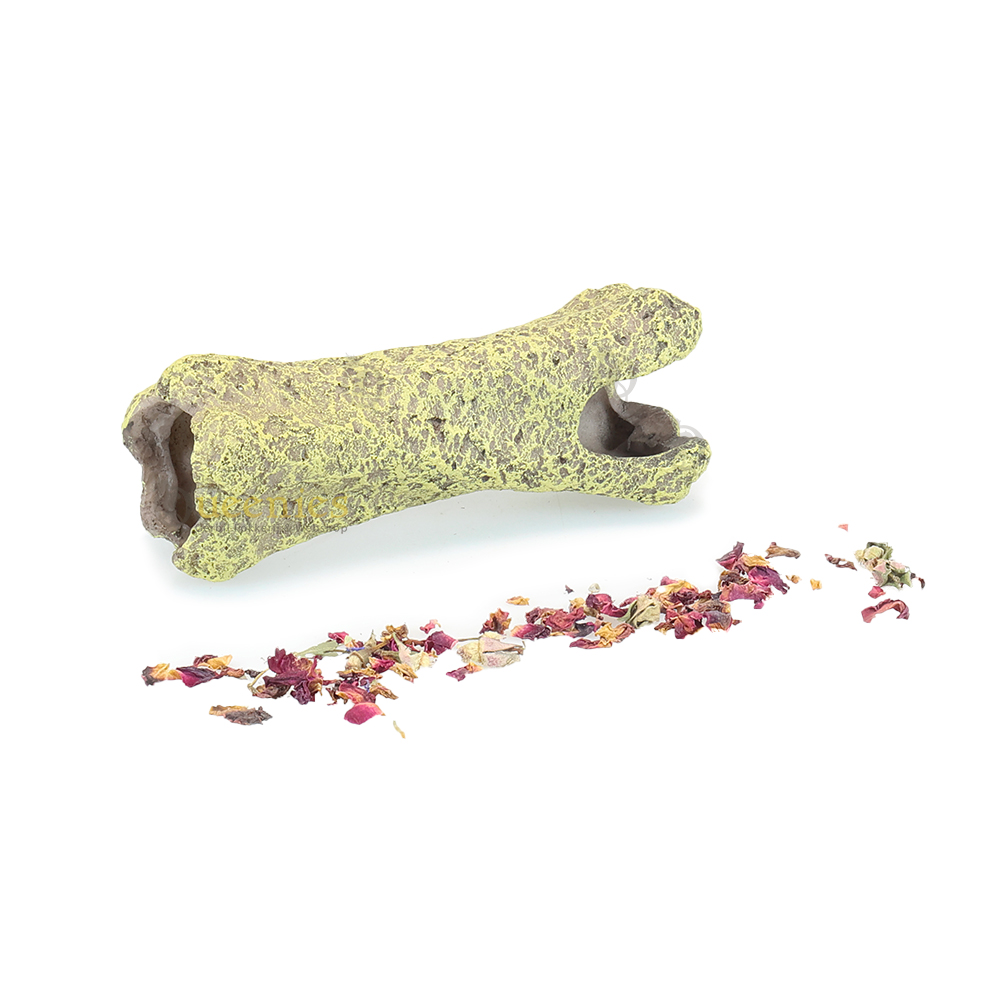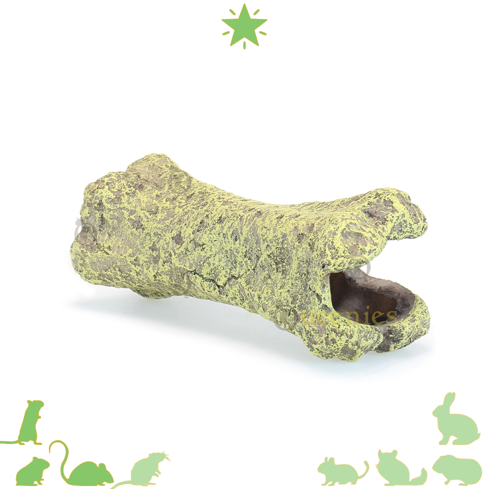 Met een realistisch design dat lijkt op een fossiel bot uit het geologische tijdperk waarin de dinosaurussen leefden, biedt dit unieke decorstuk een natuurlijke schuilplaats voor Dwerghamsters zoals Campbelli / Roborovski. Ook voor Gerbils kan deze Schuilplaats goed gebruikt worden.