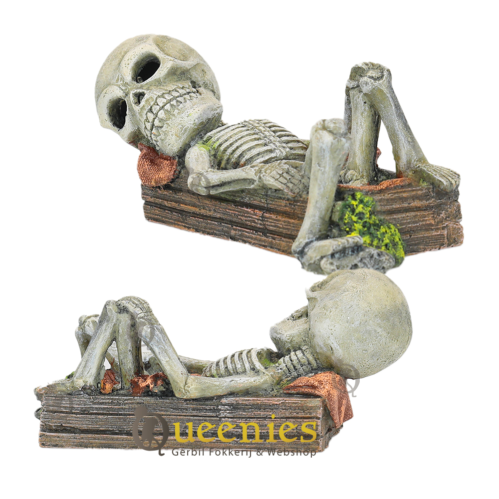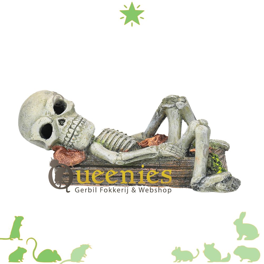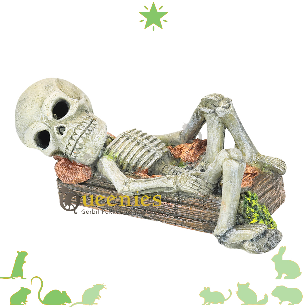 Het Skelet van 17 cm is de Decoratie voor in een Terrarium/Gerbilarium. Het is misschien niet het eerste waaraan gedacht wordt om als Decoratie te kopen voor een Hamster Terrarium of Knaagdieren Gerbilarium, maar toch is het Skelet een ongewone leuke en spookachtige toevoeging voor in het Knaagdieren verblijf. Het kan worden gebruikt voor verschillende thema inrichtingen zoals Halloween. Als het Skelet wordt gebruikt met Halloween kan het ook nog worden aangekleed met Halloween nestmaterialen / Bodembedekking om een extra vleugje sfeer toe te voegen. Ook kan het Skelet mooi op Gedroogd Terrarium Mos worden neergezet. Zoals op de foto’s terug te zien is, ziet dit er ook heel leuk uit.