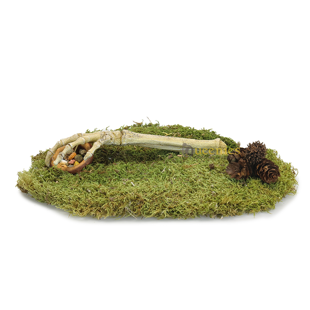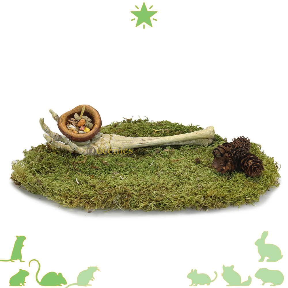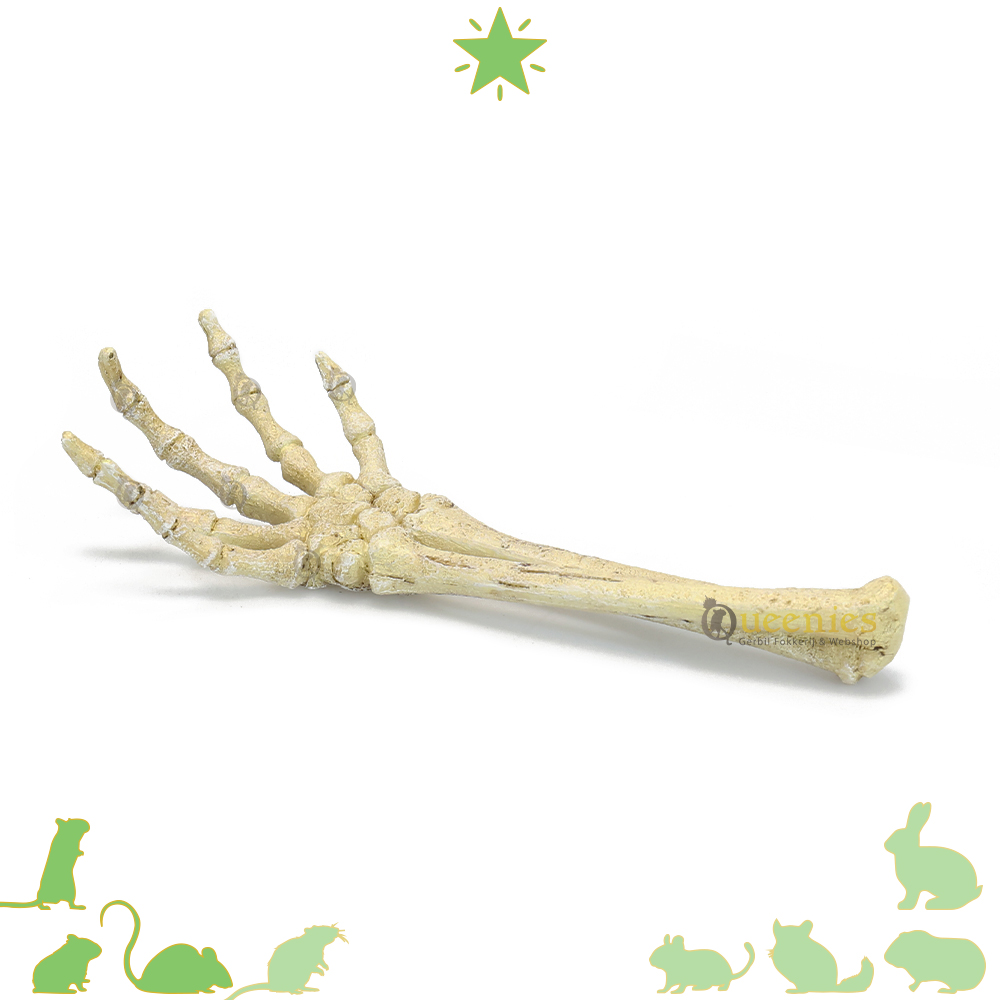 Behalve dat de Skelet hand een onwijs gaaf decoratie stuk is kan het ook functioneel worden gebruikt. Samen met het gebruikt van nestmateriaal kan er van de hand ook een schuilplaats gemaakt worden. Zoals je op de foto’s kan terugzien kan de hand ook het eten van de Knaagdieren beschermen. Dit kan op een gelijke manier gedaan worden met nestmateriaal op een veilig plekje te creëren voor Gerbils, Hamsters en Muizen.