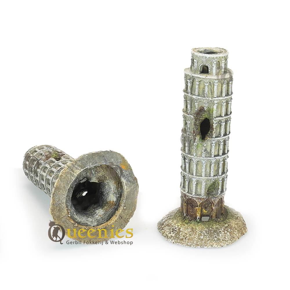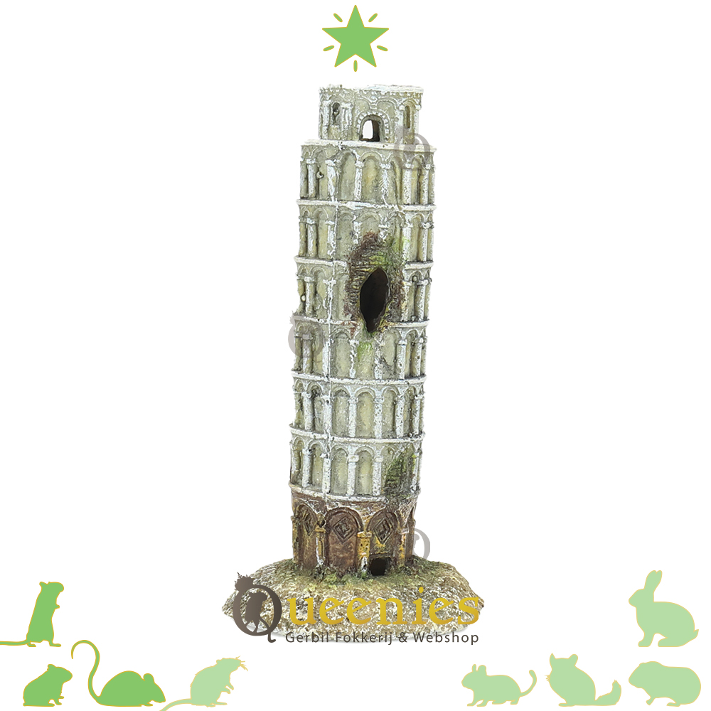 Met de toren van Pisa 9 cm haalt u prachtige kunsthars artikelen voor Hamsters en Muizen in huis die Knaagproef zijn en eenvoudig zijn schoon te maken. De eenvoudige reiniging is ideaal wanneer u Muizen heeft, die willen nog wel eens plassen op huisjes en speelgoed. De nare geurtjes wast u eenvoudig weg wanneer het product is gemaakt van Kunshars. Met de Toren van Pisa brengt een stukje iconische Italiaanse charme in het leven van uw Hamster, geïnspireerd door de wereldberoemde Toren van Pisa. Dit kunststukje wordt vooral veel gebruikt bij hamsterscaping is niet alleen een lust voor het oog in uw Hamsterkooi, maar biedt ook praktische verrijking voor uw kleine Knaagdier.