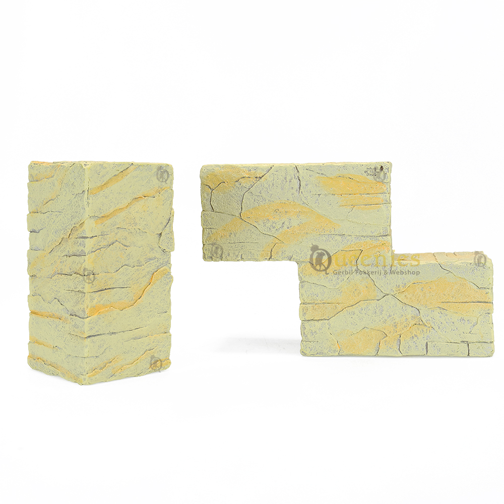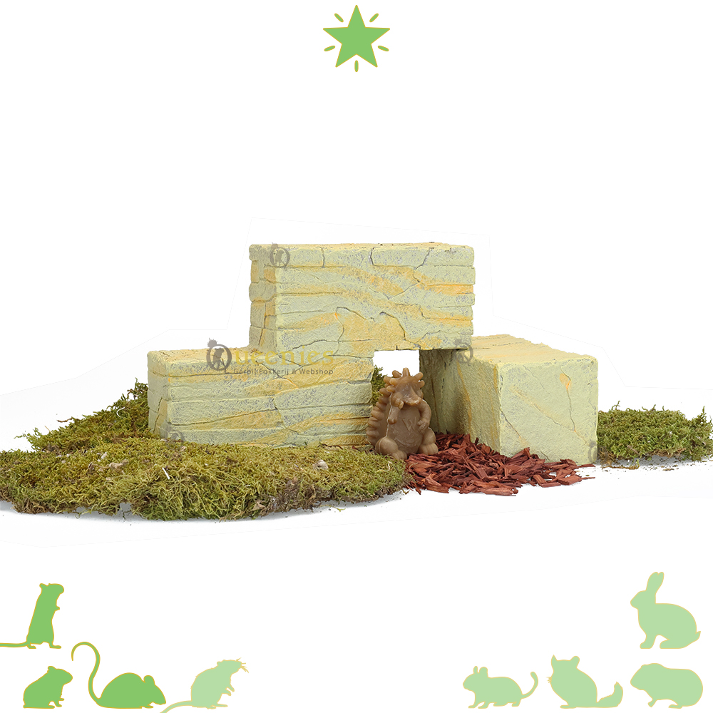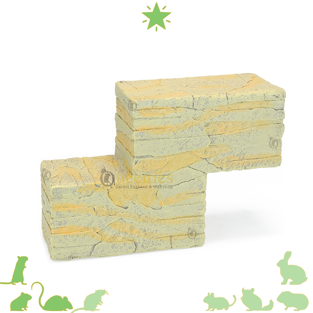 Deze zandkleurige bouwstenen zijn gemaakt van stevig kunsthars en hebben een natuurgetrouwe rotslook. Dankzij hun realistische uitstraling zijn ze een echte aanwinst voor elk knaagdierverblijf. De stenen zijn ontworpen om kleine klimmers zoals muizen en gerbils uit te dagen, maar zijn ook ideaal voor hamsters en dwerghamsters die graag verkennen of zich verschuilen. Door hun vormen kun je eindeloos variëren met de inrichting van het verblijf van klimroutes tot beschutte hoekjes.