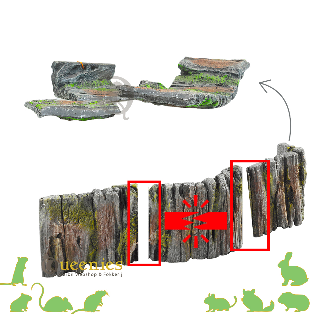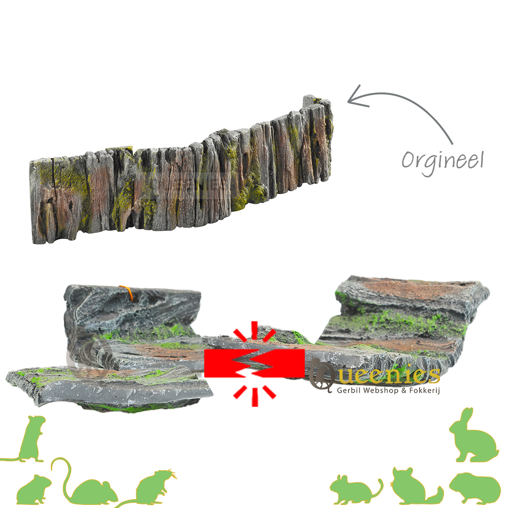 Deze OUTLET Rots afscheiding 38 cm voor Hamsterscaping ligt in een paar stukken. Maar eenvoudig te lijmen. De meeste zijn zelfs maar op 1 punt gebroken. De breuklijnen zijn recht en het materiaal is dik. Er kan voldoende lijm geplaatst worden zodat het weer 1 hele Rots afscheiding wordt. Wanneer er bij ons Knaagdier artikelen binnenkomen met lichte schade die eenvoudig herstelt kunenn worden doen wij dit altijd. Maar bij dit product zal altijd zichtbaar zijn dat het herstelt is, dan kunnen wij dit niet meer als nieuw verkopen. Voor u een buitenkans om een goedkope afscheiding te kopen. U krijgt maar liefs 10 euro korting op het product.