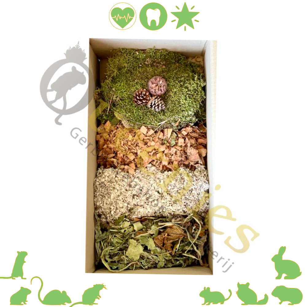 Proefpakket B bevat producten uit de categorie bodembedekking waarbij u een zo natuurlijke inrichting voor uw Knaagdier of Konijn wilt nabootsen. Dit proefpakket bevat 4 items welke nooit mogen ontbreken in een natuurlijk ingericht Terrarium / Gerbilarium.