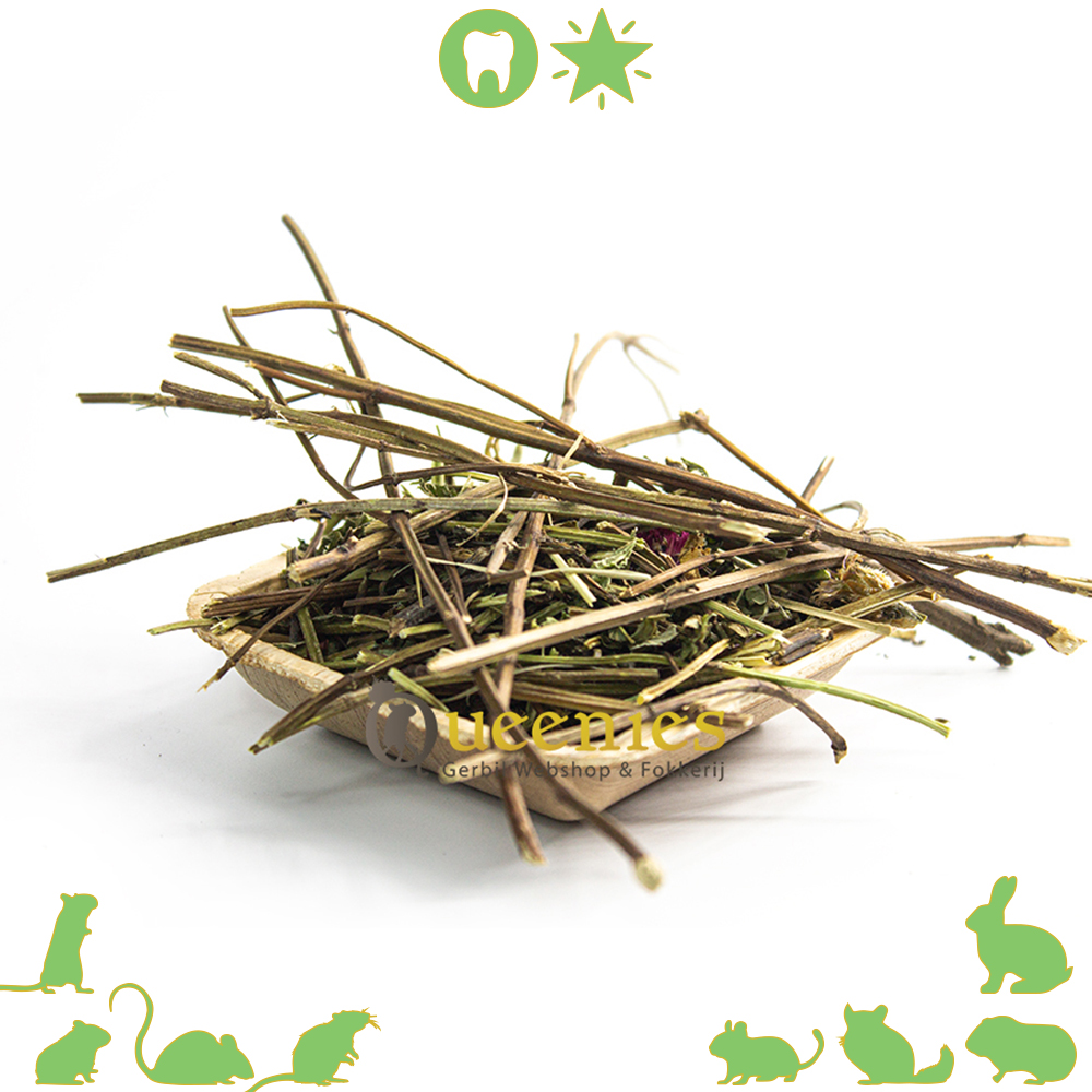 Verrijking en Stimulatie: Erg belangrijk bij Knaagdieren en Konijnen is verrijking en stimulatie. Verrijking van voeding spreekt wel voor zich, maar stimulatie is iets waar we onszelf altijd in kunnen verbeteren voor onze huisdieren. Zeker gerbils hebben veel stimulatie nodig omdat het zulke actieve en leergierige dieren zijn. Zij willen de hele dag uitgedaagd worden en nieuwe dingen ontdekken. Deze Citroenmelisse steeltjes dragen hieraan bij. De Gerbils of andere Knaagdieren kunnen aan de steeltjes knagen en spelen, wat hun geestelijke en fysieke welzijn bevordert.
