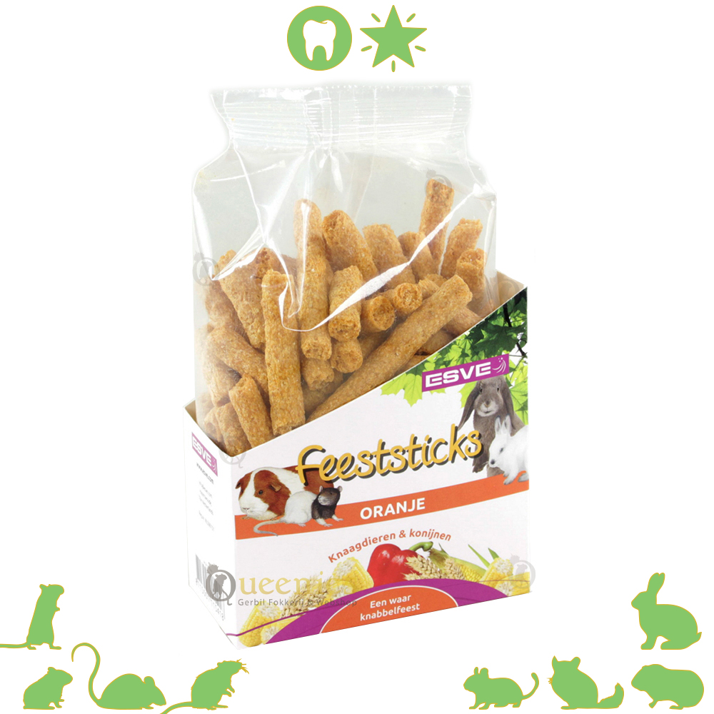 ESVE feest sticks wortel zijn natuurlijke en bijzonder gezonde sticks Voor hobby konijnen en knaagdieren. Feest sticks bevatten belangrijke voedingsstoffen en zijn een aanvulling op de dagelijkse voeding. De feest sticks zijn niet alleen gezond ,maar bevredigen ook de natuurlijke knabbelbehoefte, en bevordert door zijn speciale samenstelling de spijsvertering en is licht verteerbaar. Het is een genot de dieren te zien knabbelen. Aanvullend diervoeder voor hobby konijnen en knaagdieren.