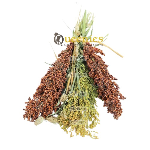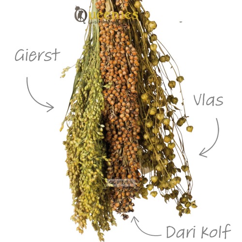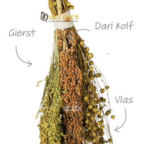 Samenstelling: Dari 77%, pluimgierst 11,5%, vlas 11,5%.