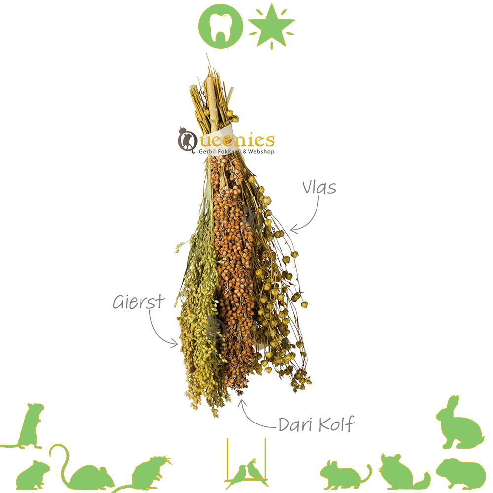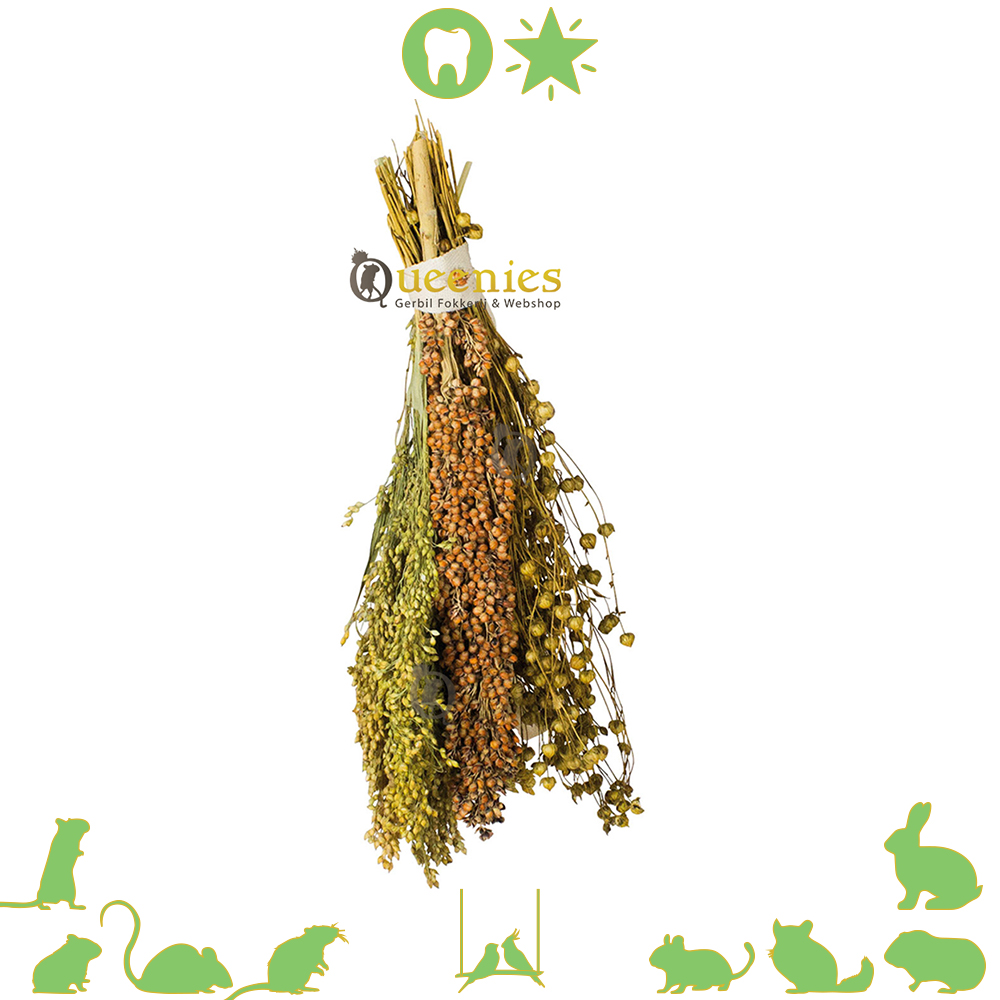 Gerbil Bouquet Pick & Run met Darre / Pluimgierst /Vlas 130 gram - Gezonde versnapering voor Knaagdieren en Vogels
