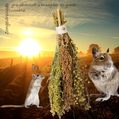 Natuurlijke voedingssupplementen is het beste wat uw uw huisdier kunt geven. Geen middeltje of pilletje die hier tegenop kan. Zon gerijpte zaden en of grassen zitten vol met vezels, vitamines en olien wat de spijsvertering bevordert en ondersteunt. De spijsvertering is ongeveer het belangrijkste onderdeel in een lichaam wat een mens of dier gezond houdt. Daar worden afvalstoffen uit het lichaam verwerkt, voedingsstoffen omgezet in energie en worden gebruikt daar waar het lichaam ze nodig heeft. Bij knaagdieren kunt u dan denken aan de huid en vacht. Dat is de reden dat dergelijke voedingssupplementen als deze Bouquet Pick & Run met Darre / Pluimgierst /Vlas nooit mag ontbreken in uw Terrarium / Gerbilarium. Wij hebben een ruim assortiment aan dit soort zondgedroogde grassen of Bouquetten. Bekijk alle Bouquetten in deze link.