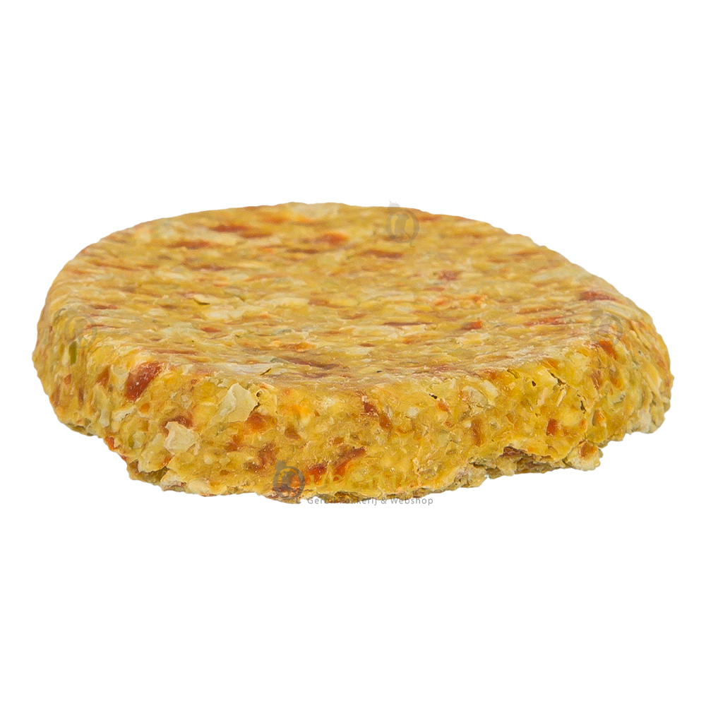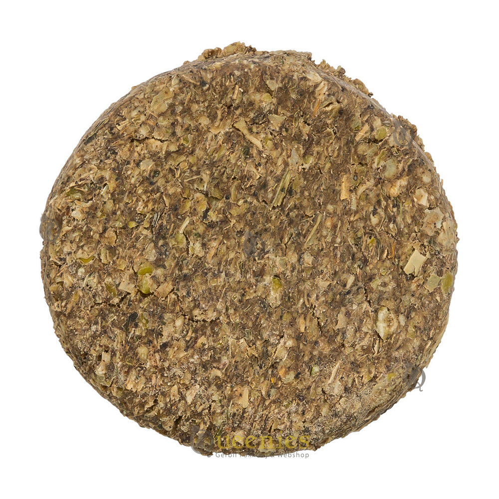 De variant met paardenbloem bevat onder andere bergweidehooi en peterselie voor een kruidige toets. Rode biet zorgt voor een iets zoetere smaak met meer eiwitten, terwijl wortel juist wat zachter van smaak is en geliefd is bij kieskeurige knagers.