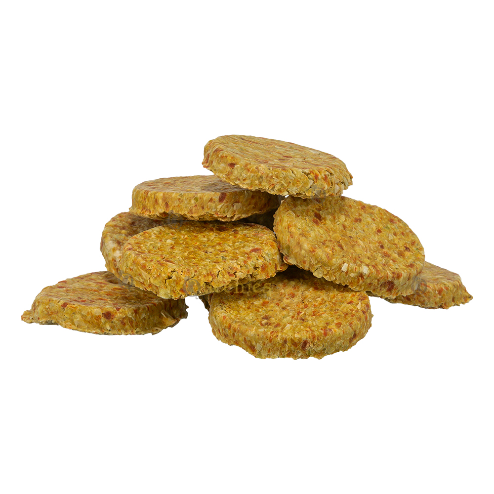 Bij het samenstellen van deze crackers is gekozen voor een eenvoudig, transparant recept. Geen kunstmatige toevoegingen, geen verborgen suikers. Gewoon pure ingrediënten in compacte, krokante vorm. Ze worden licht geperst, waardoor de textuur stevig blijft maar toch knaagvriendelijk is. De verschillende smaken bieden afwisseling in geur en smaak, wat bijdraagt aan een gevarieerd en stimulerend dieet.