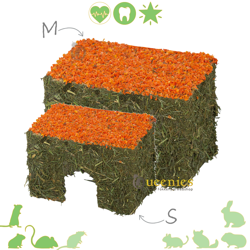 De Knaaghut Hooi / Wortel is een knaaghuis gemaakt van hard karton met bergweide hooi en een gedroogde Wortel dak. Dat maakt dit huisje een interessant Knaag en Knabbelhuisje wat in zijn geheel eetbaar is. Doordat dit huisje voor uw Gerbil of andere Knaagdier volledig eetbaar is wekt het direct de interesse van uw huisdier! Maar pas op!, uw diertje is binnenkort weer dakloos! De zijkanten van het huis zijn gemaakt van eetbaar perkament bedekt met knapperig en aromatische bergweidehooi. Het huis wordt afgedekt met de lekkerste gedroogde wortelen die er zijn. Uw lieve Gerbil of andere kleine knager eet zijn buikje rond aan zijn eigen huisje.