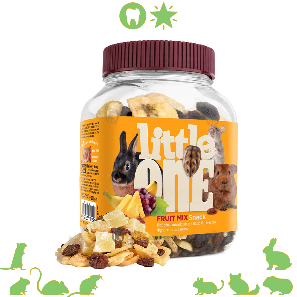 Gedroogd fruitmix is meer dan alleen een gastronomische traktatie voor kleine Knaagdieren. Bananen zijn zeer voedzaam en rijk aan kalium. Ananas bevat een grote hoeveelheid caroteen, vitamine A en C, verschillende B-vitaminen, magnesium, natriumchloride en jodium. Rozijnen zijn rijk aan minerale zouten, organische zuren en vitaminen. Rozijnen zijn ook een geliefde snack bij gerbils. Met dit product is garantie op succes verzekerd ;-)