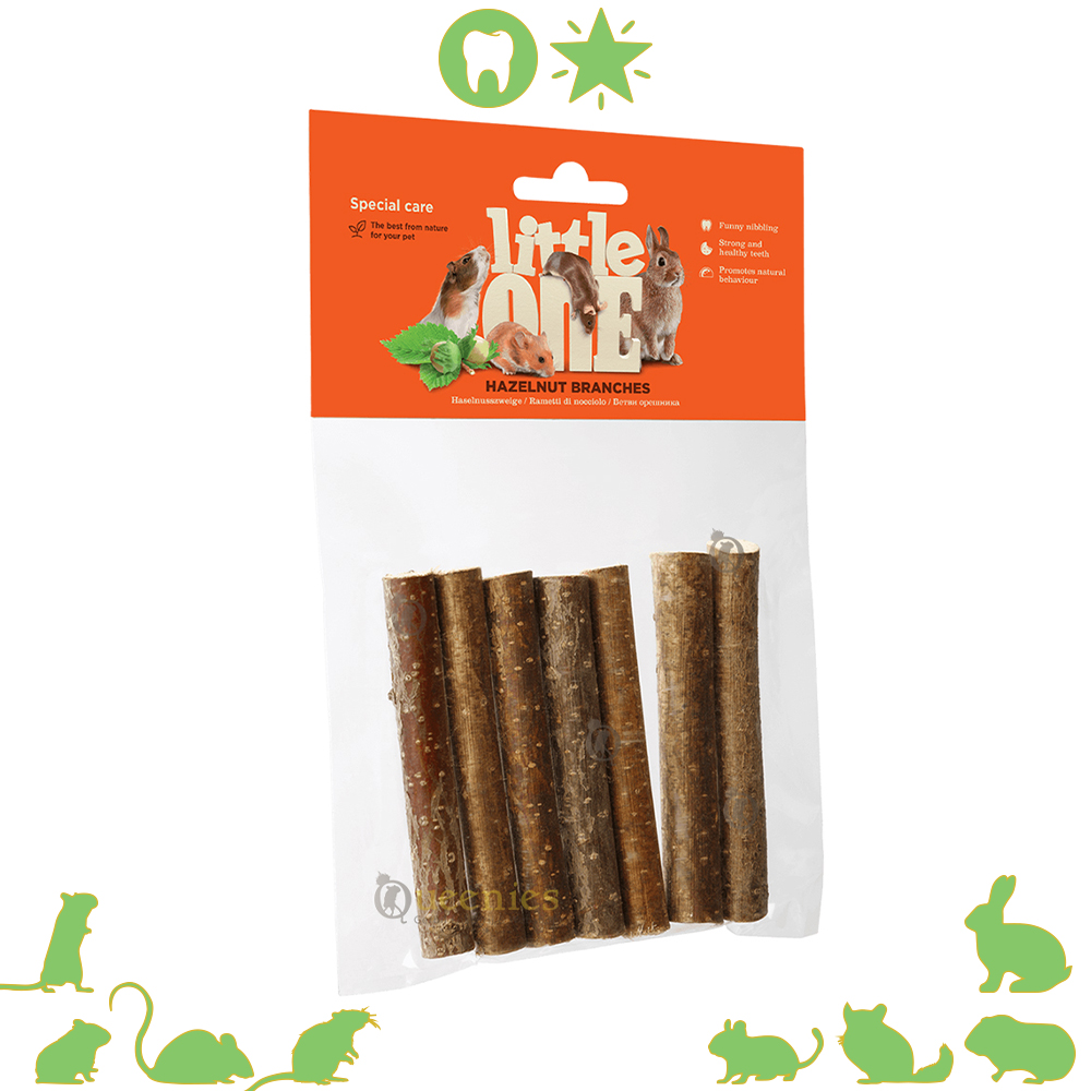 Knaaghout hazelnoot is een natuurlijke manier waarmee knaagdieren en konijnen hun tanden slijpen. Tanden van knaagdieren en konijnen blijven heel hun leven groeien en moeten daarom steeds geslepen worden. Knagen aan takken is gezond voor het gebit en houdt de dieren een tijdje bezig. Inhoud 7 knaagstokken van de hazelaar