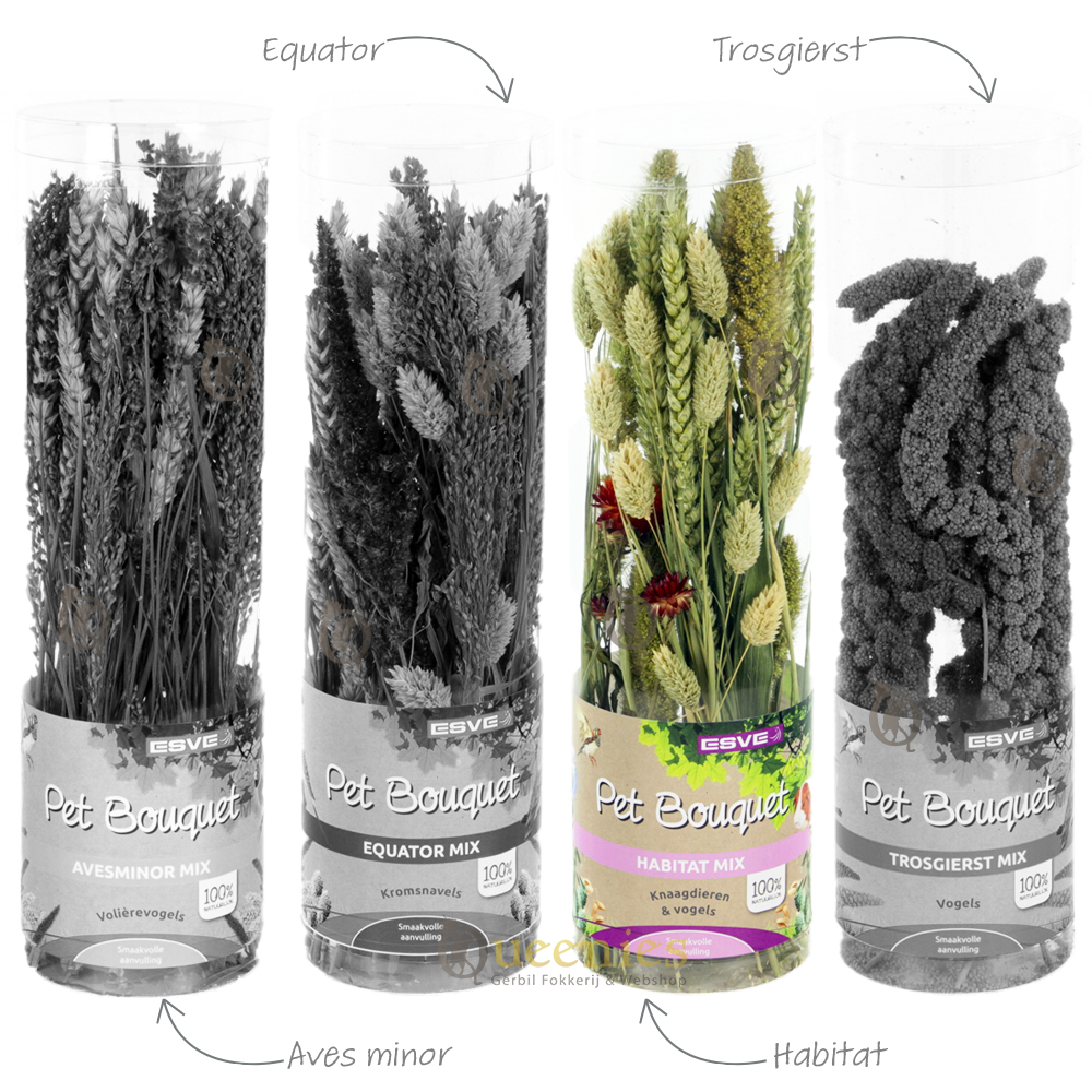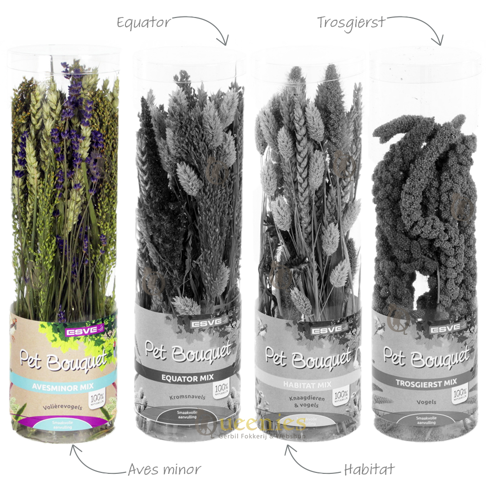 3) Pet Bouquet Habitat heeft een kleurrijke mix van Haver, Heermoes en Kanariegras
