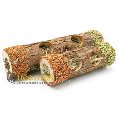 Wel kunt u deze grotere snack boomstam gebruiken als traktatie voor uw knaagdier, en steeds weer hervullen met vers hooi zodat het echt een leuk en aantrekkelijk speeltje blijft voor uw huisdier.