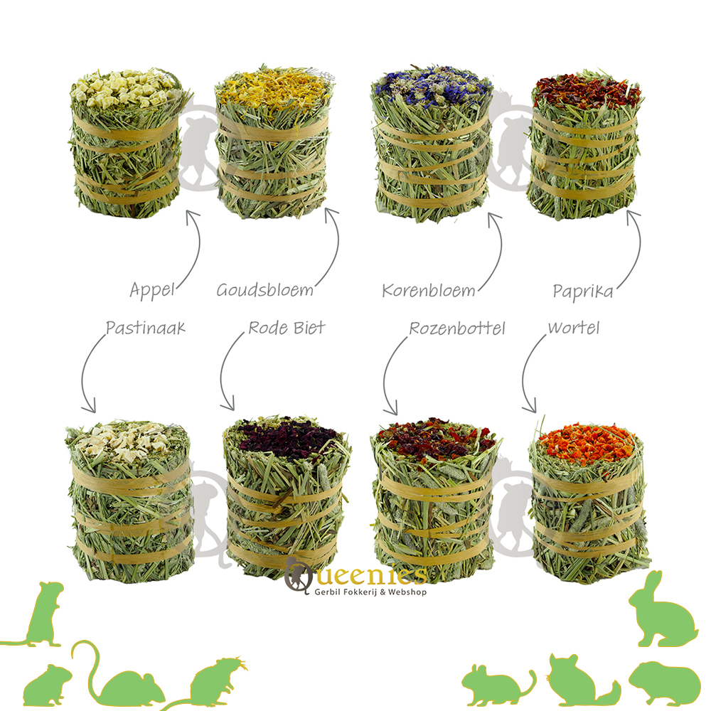 Timothy Hooi rol 100 gram –8 verschillende smaken - Gezonde Vezelrijke Traktatie voor Knaagdieren en Konijnen!