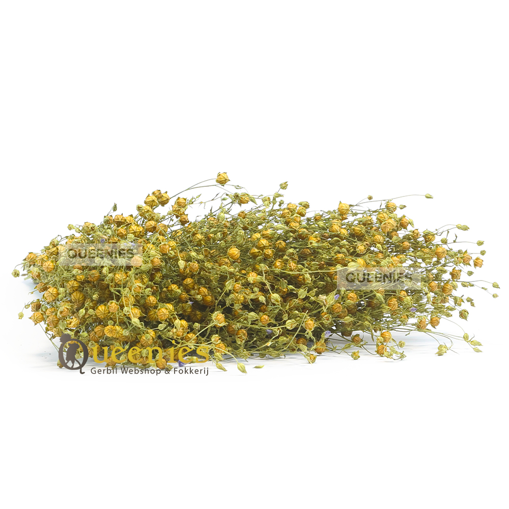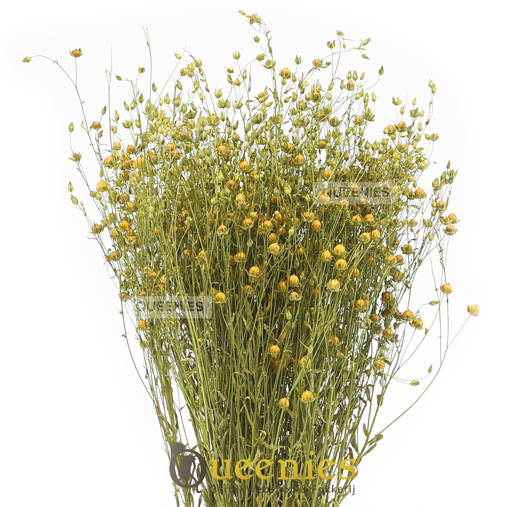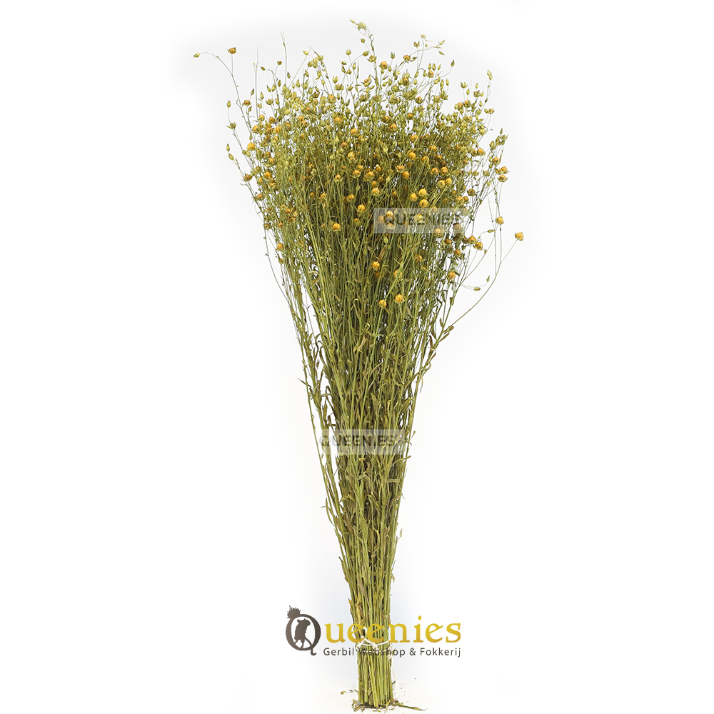 Inhoud; Lijnzaad vlas bos van 50 cm lengte en ongeveer 100 gram aan gewicht ( flinke bos )
